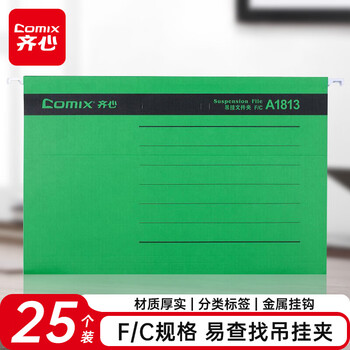 齐心(COMIX) 25个易查找吊挂夹 倒挂夹 挂夹文件夹 倒挂文件夹 F/C 纸质资料夹 绿 A1813   收藏