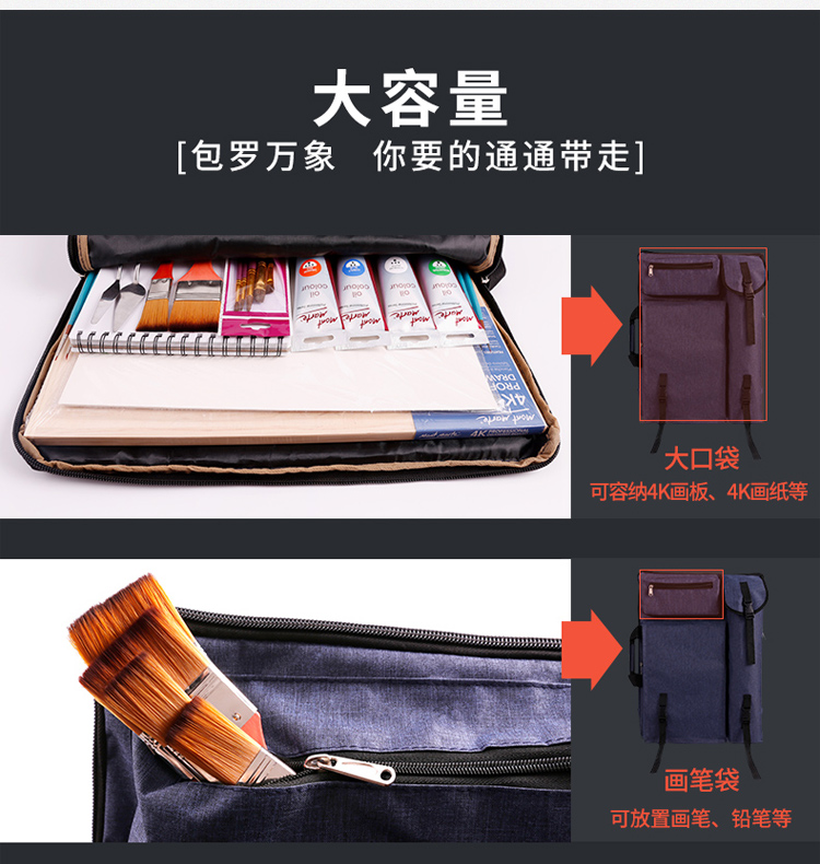 • 蒙玛特【全网低价】4k防水画板袋蓝色素描画包画架包艺考户外画袋学生收纳双肩包写生画具包MAXX1014