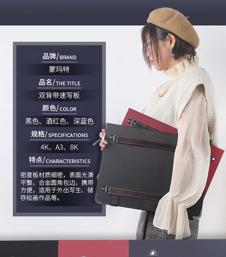 蒙玛特(Mont Marte)黑色8k速写板 双肩背画夹 美术户外便携写生素描画板学生儿童画板带兜装速写纸MAXX1007美术写生   收藏