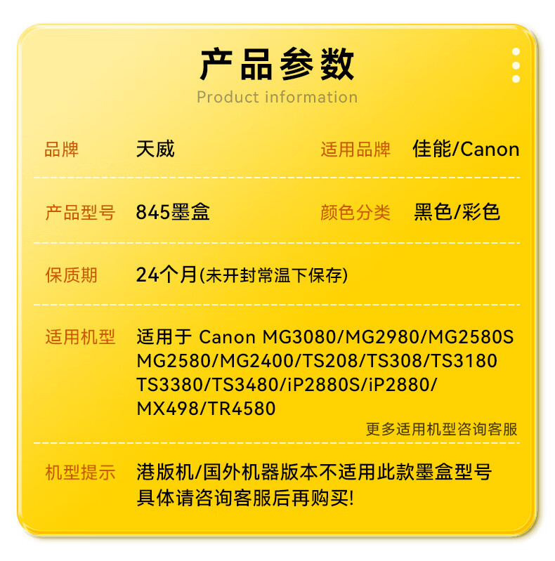 | 墨盒型号 | PG-845/CL-846 |