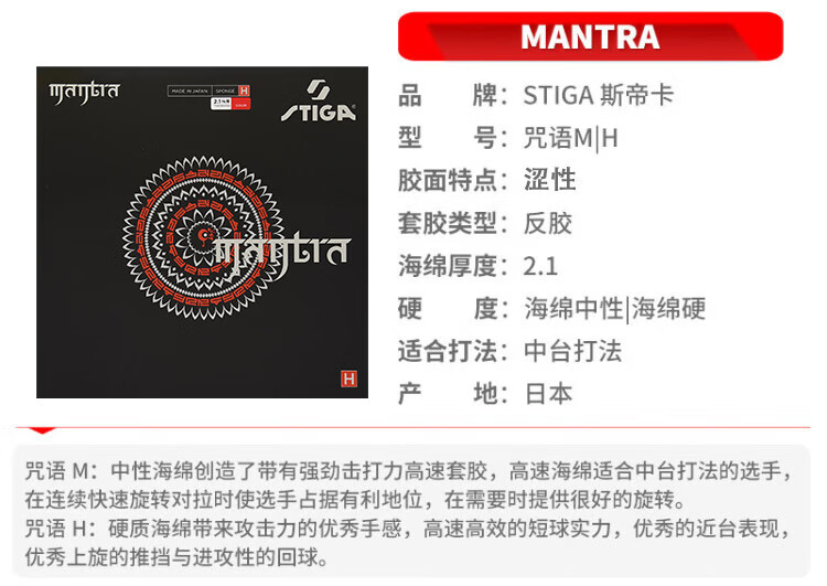 斯帝卡STIGA 乒乓球拍胶皮套胶内能 MANTRA H咒语梵语 黑色2.1   收藏