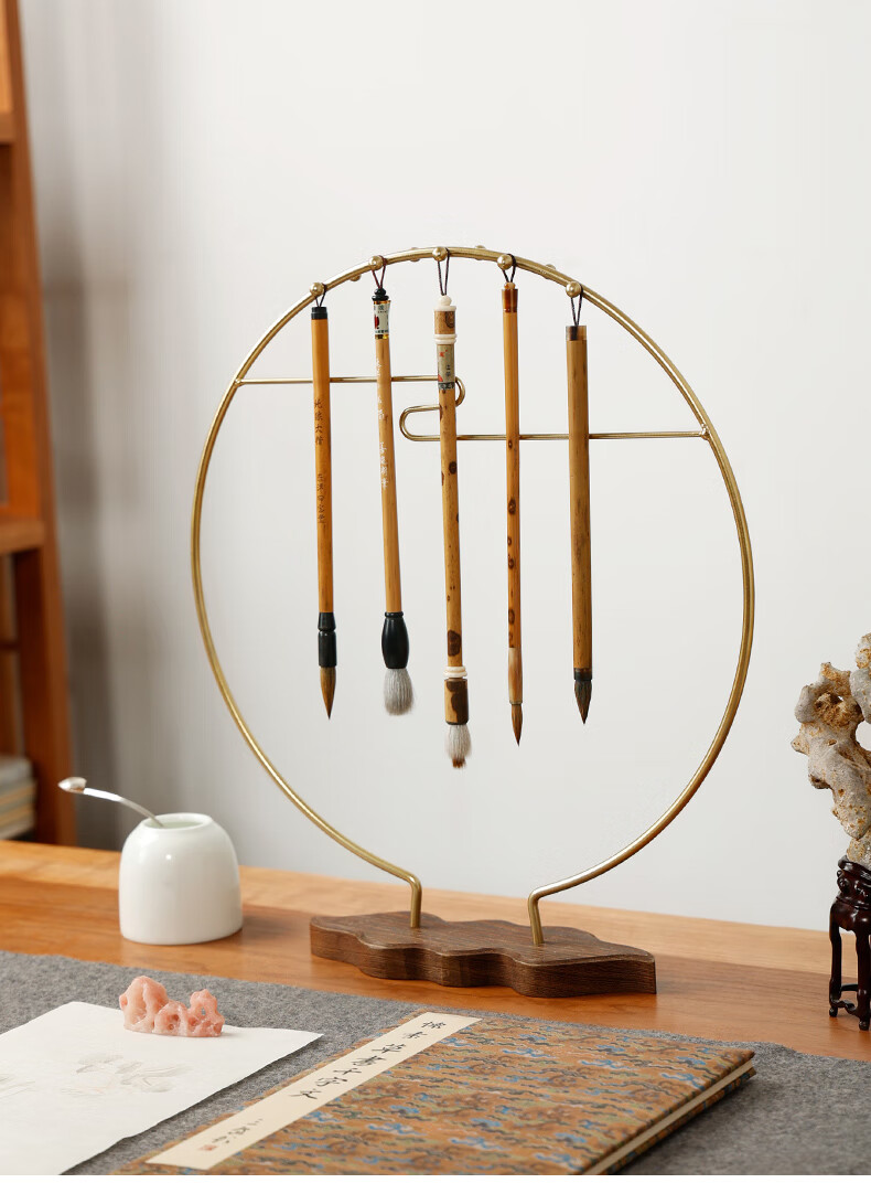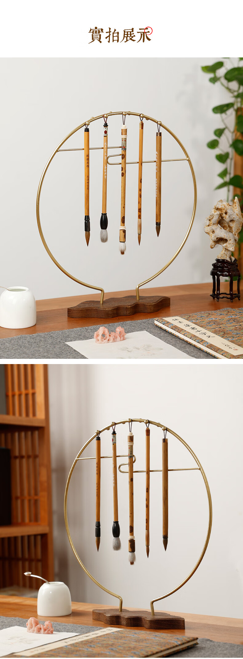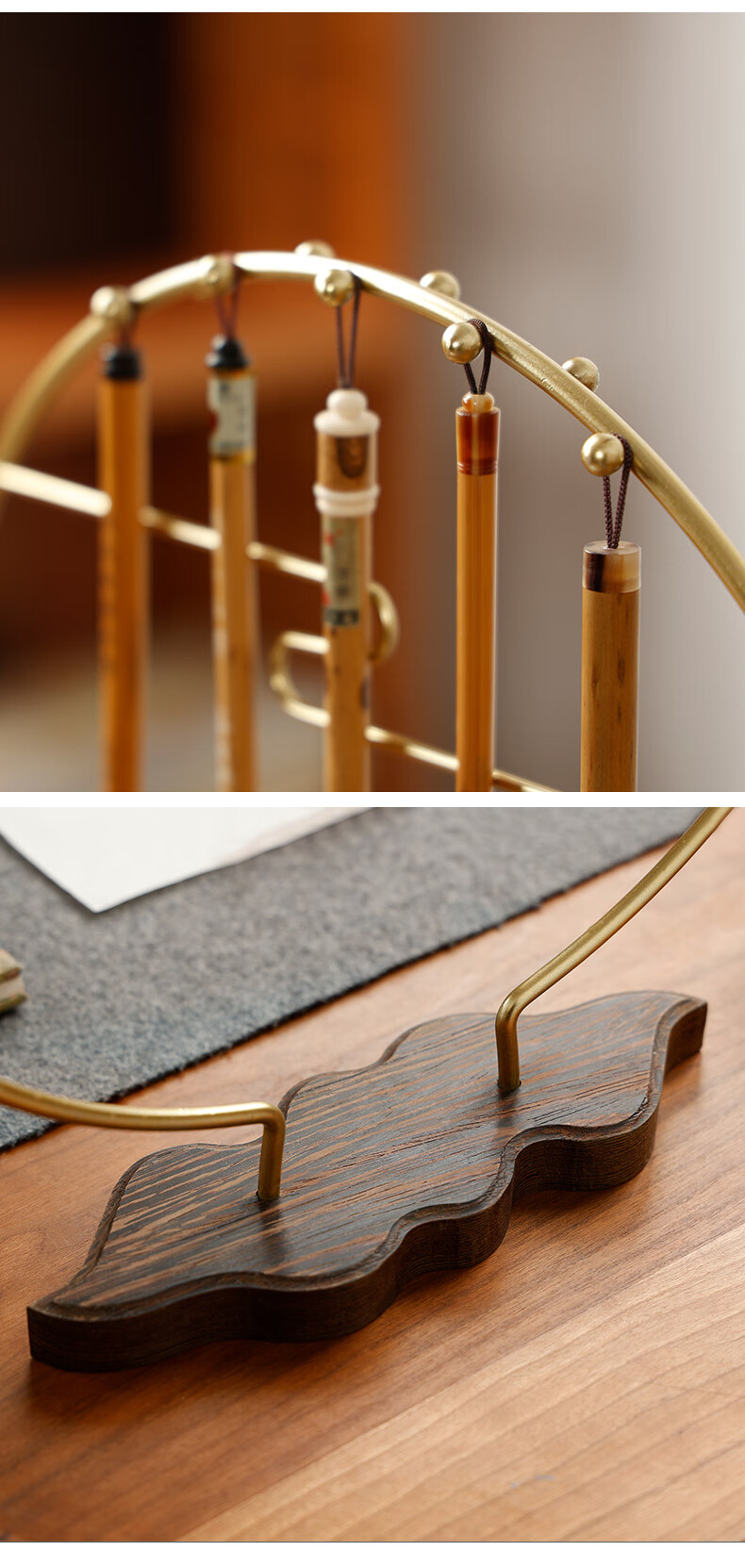 • 弘梅【全网低价】祥云红木铜毛笔架 毛笔挂实木多功能学生9针笔挂 文房四宝毛笔书法用毛笔架子