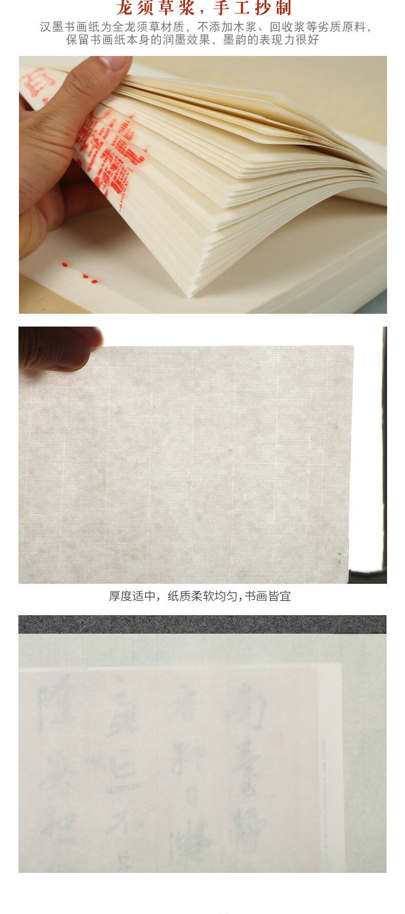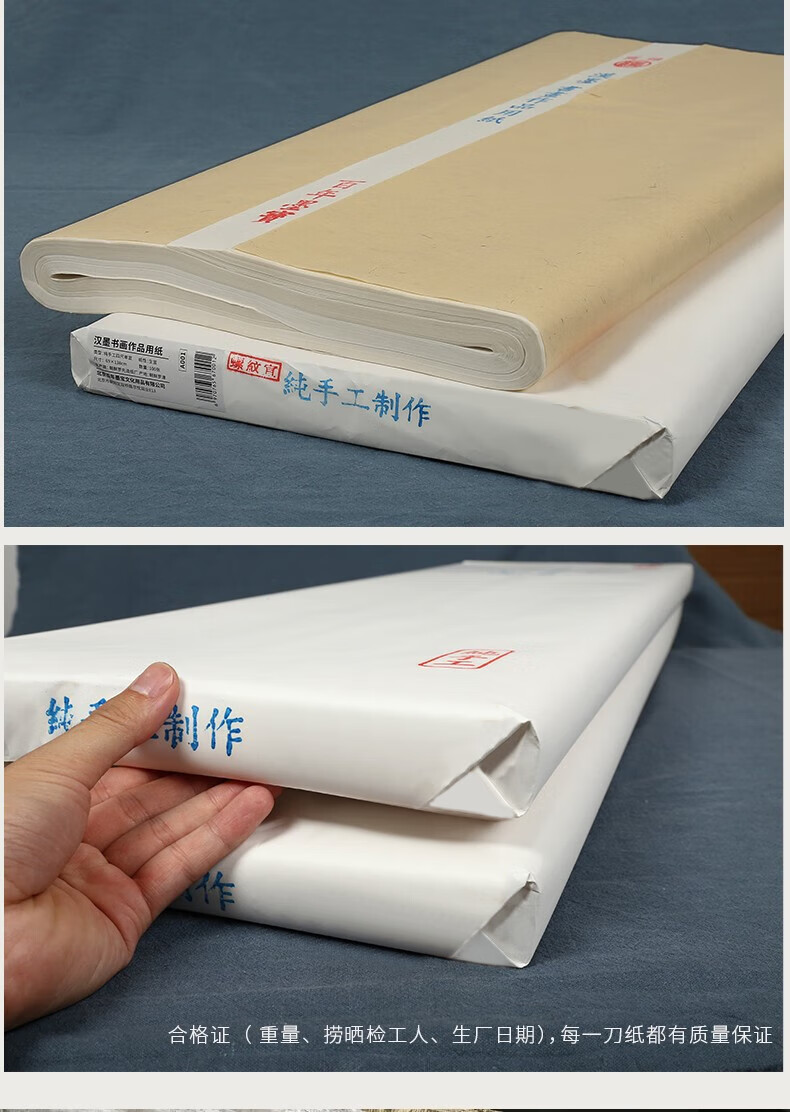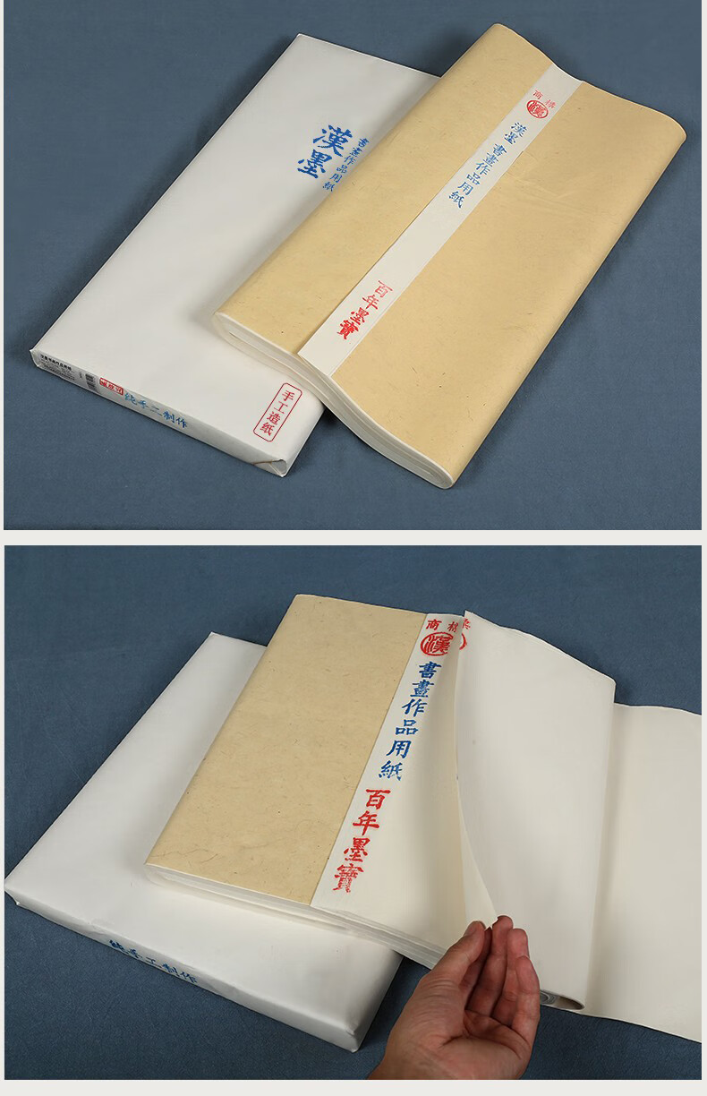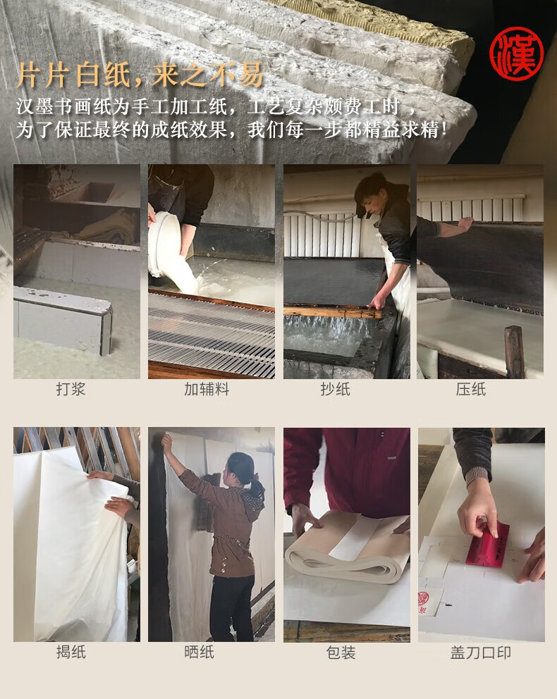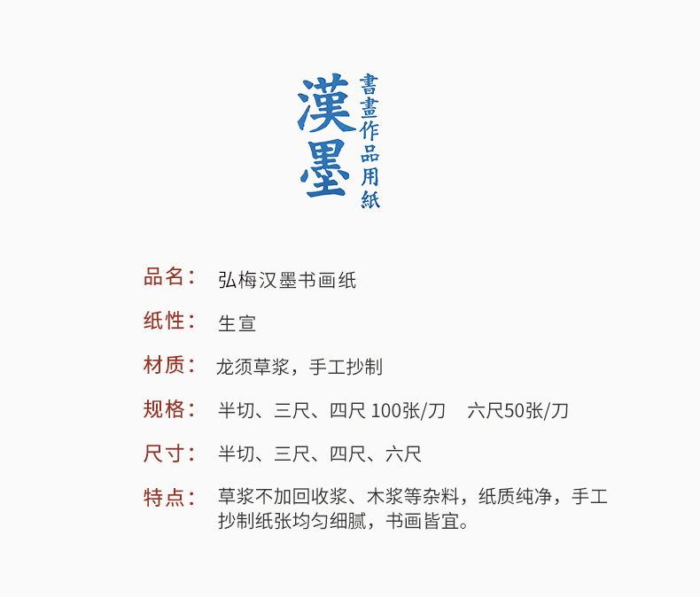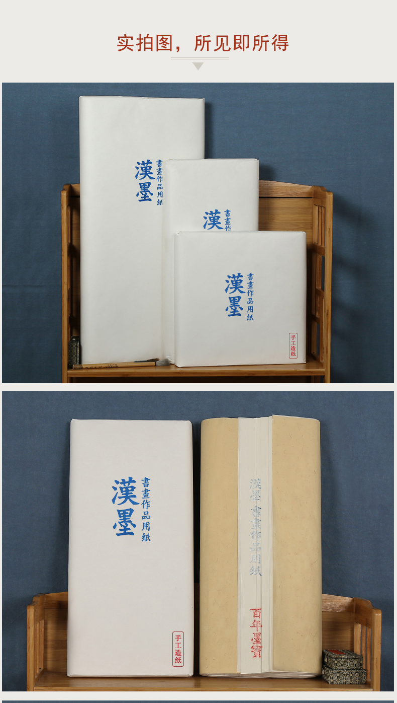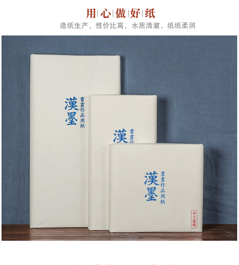 • 漢墨古法手工生宣用纸 四尺100张书法国画写意创作品用手工捞纸 文房四宝毛笔书法纸