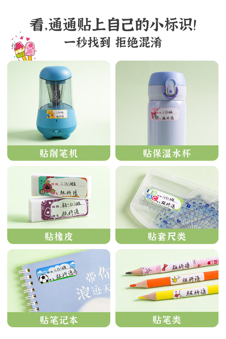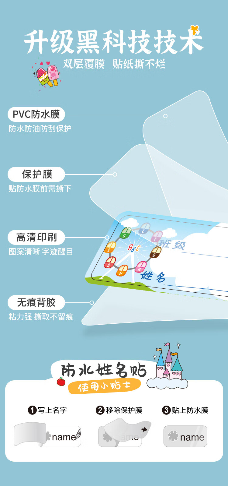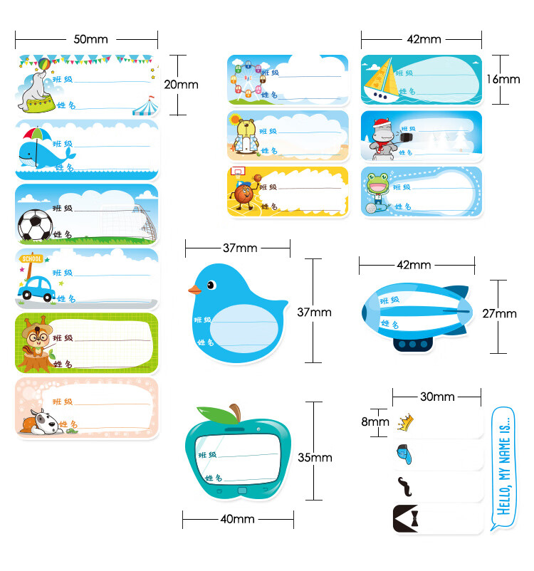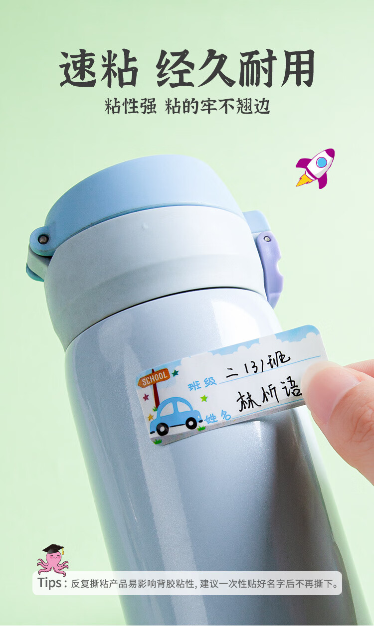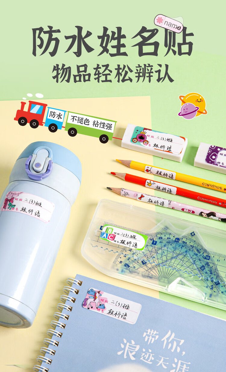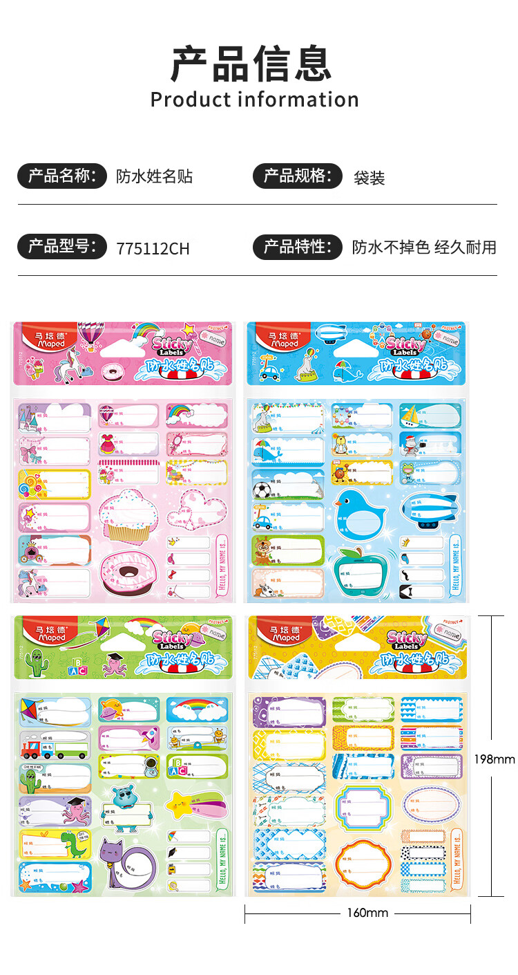 • 马培德(Maped)防水姓名贴班级 幼儿园卡通名字贴手写分类标识标记签名自粘贴纸儿童文具 775112CH【随机19贴】
