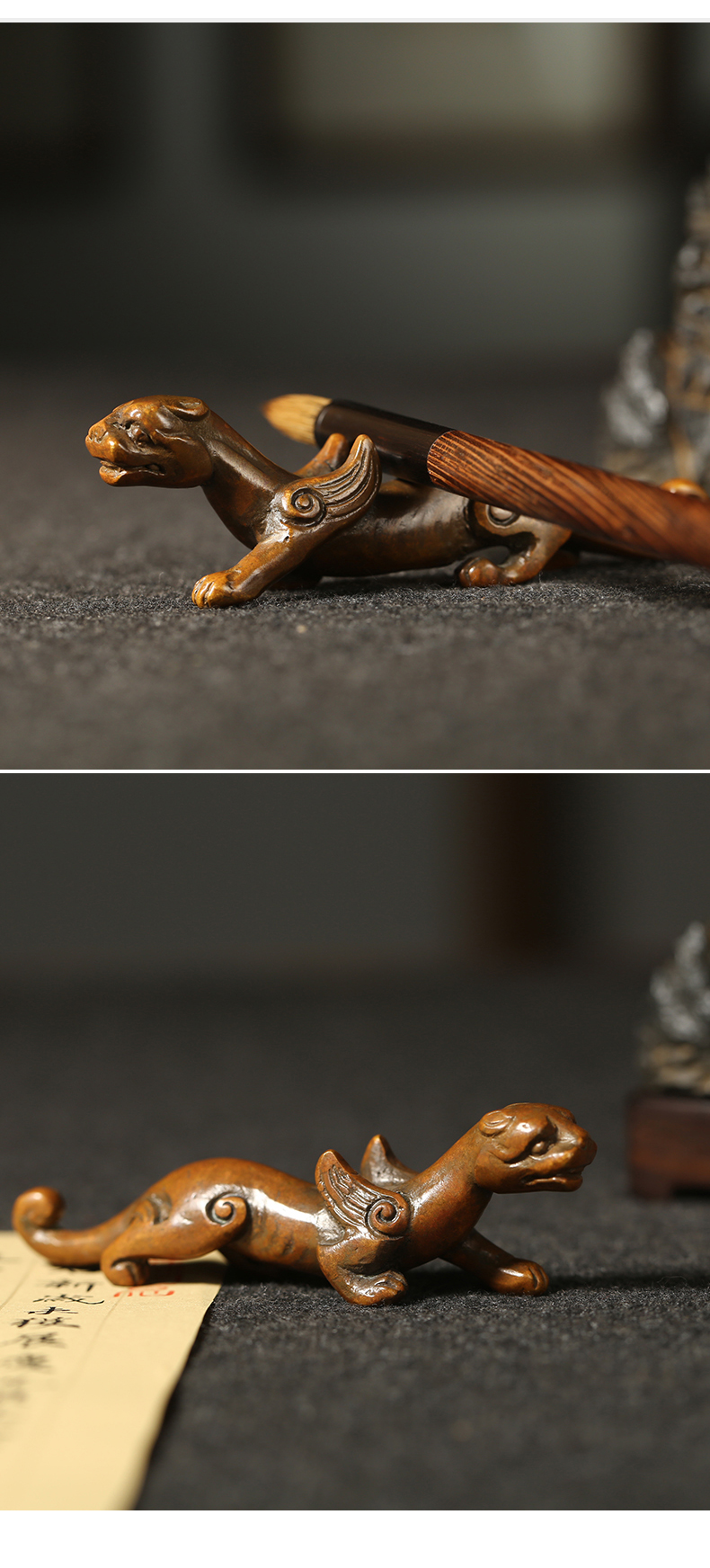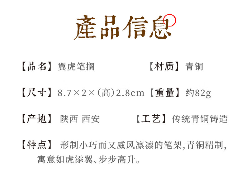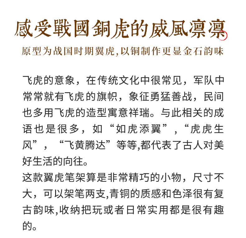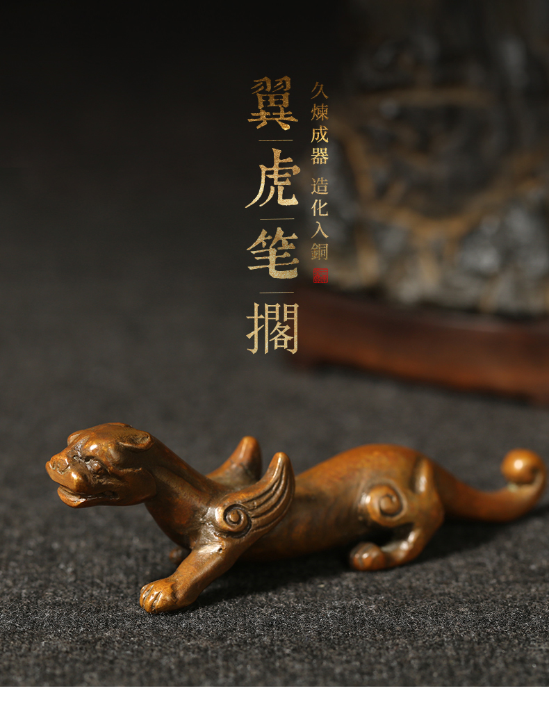 • 漢墨 手工青铜翼虎毛笔笔架 笔挂铜镇尺笔搁 文房四宝礼品铜器摆件把玩毛笔架
