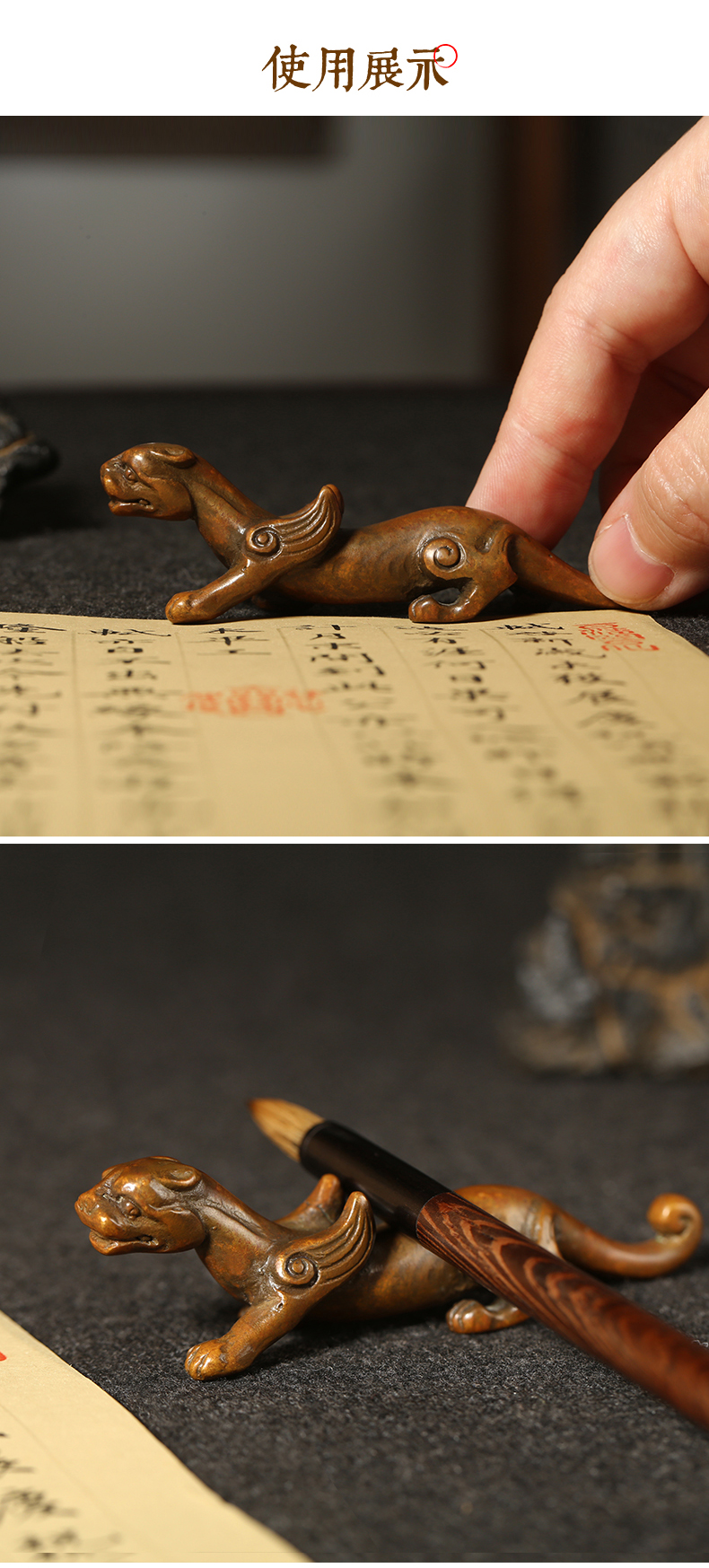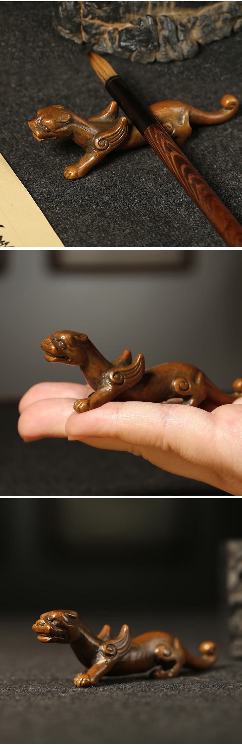 漢墨 手工青铜翼虎毛笔笔架 笔挂铜镇尺笔搁 文房四宝礼品铜器摆件把玩毛笔架   收藏