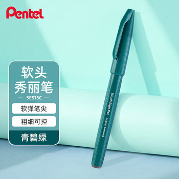 • 派通(Pentel)彩色软头秀丽笔 弹性笔尖水性笔Touch手帐书信贺卡用 SES15C青碧绿