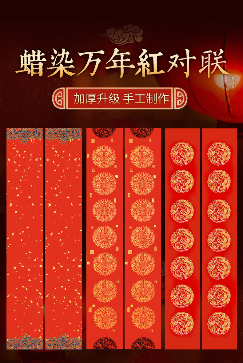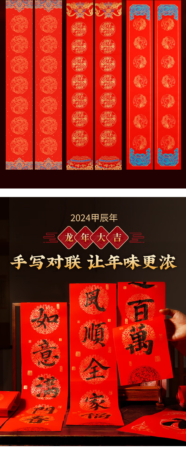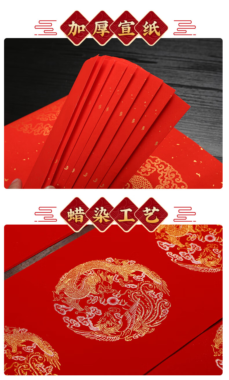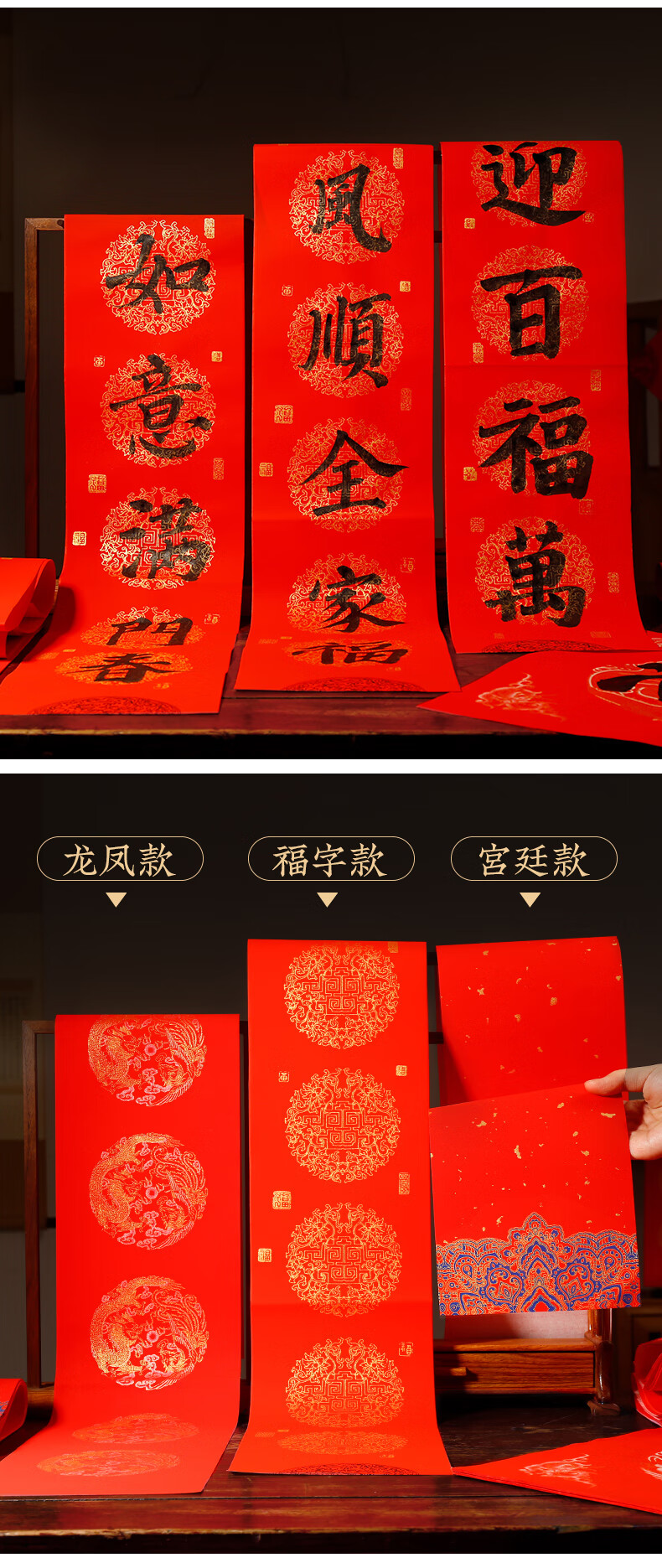 • 漢墨  春联对联纸加厚款5副  批发手写烫金春节空白七言祥云款 新年装饰礼品对联乔迁用企业专享