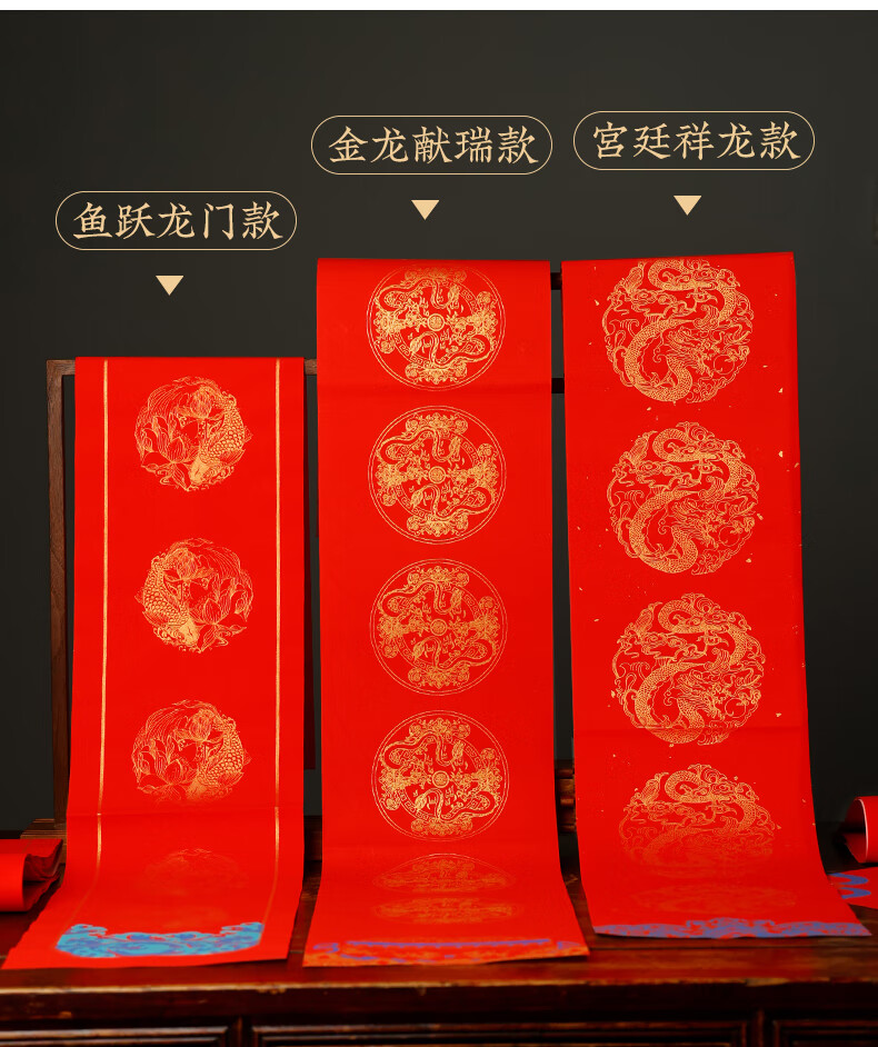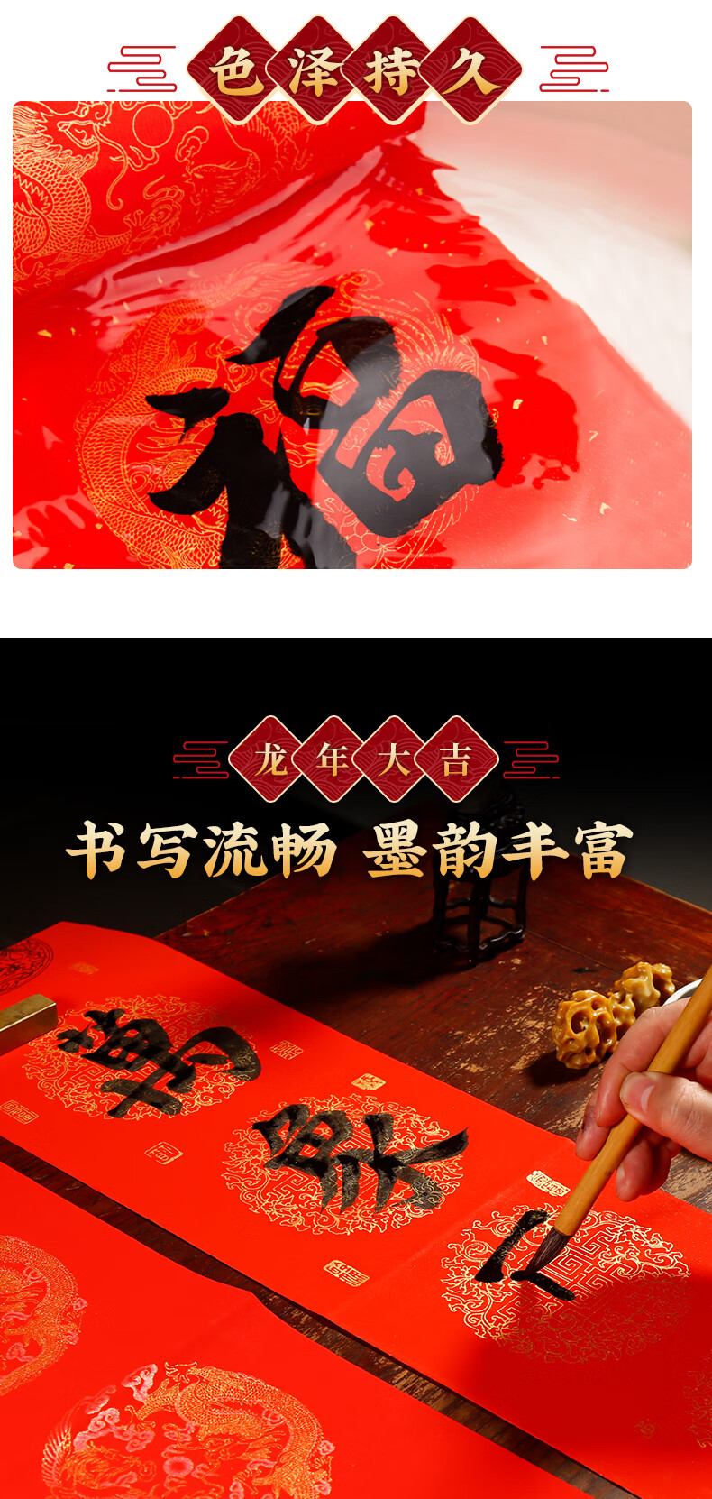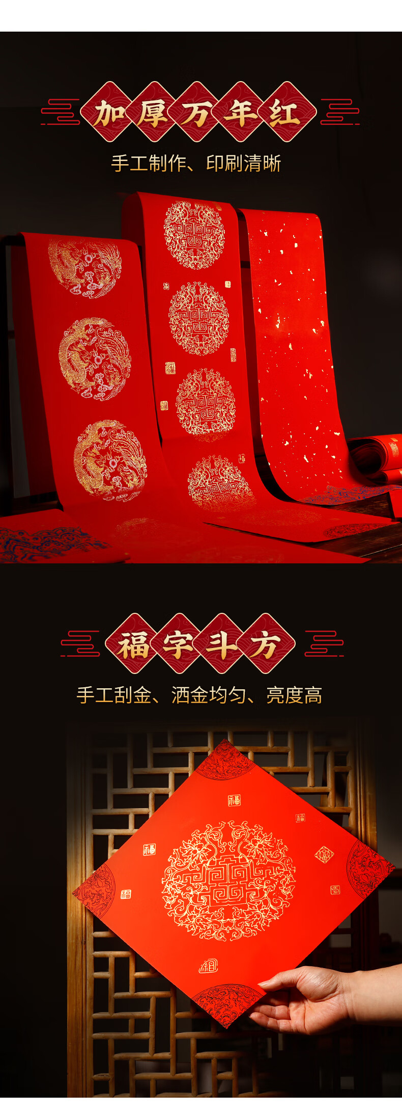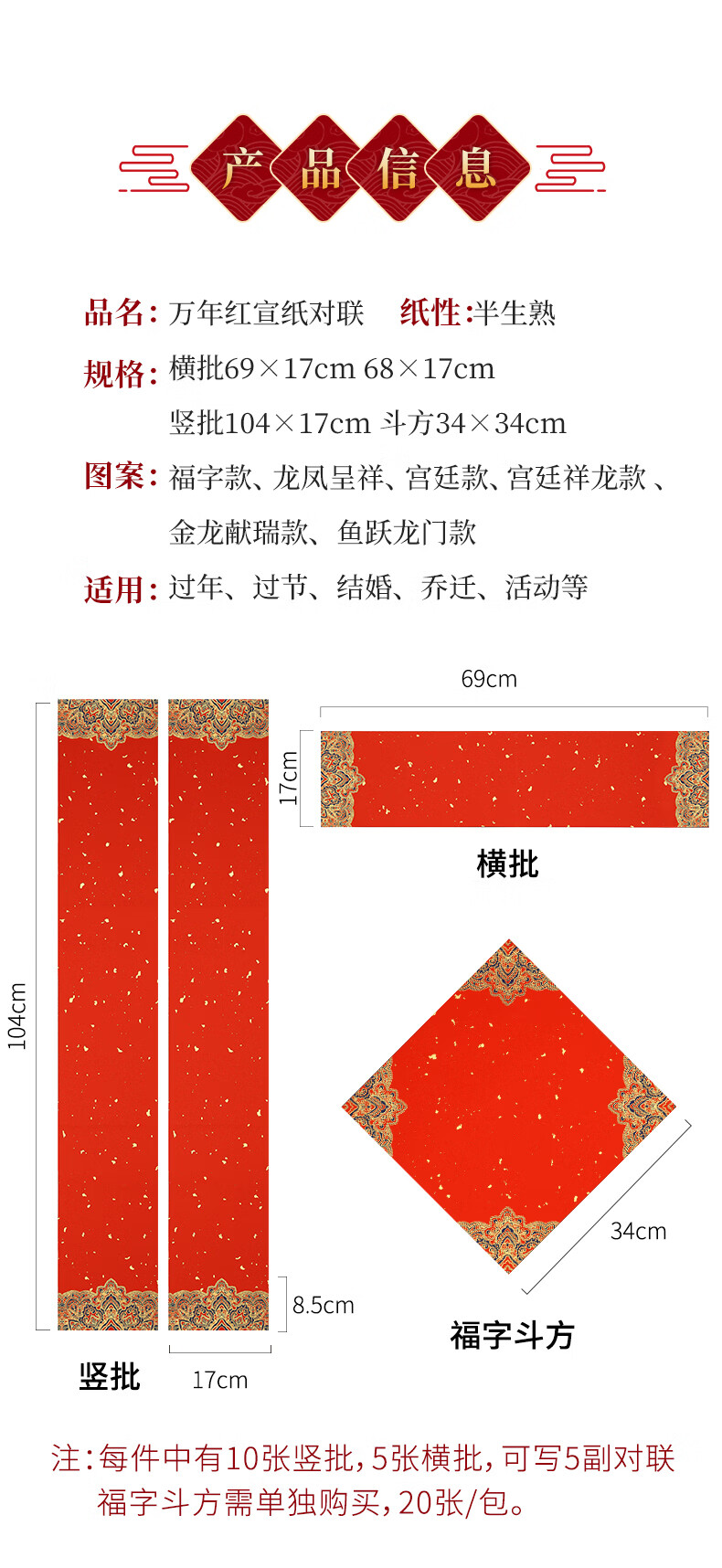 • 漢墨  春联对联纸加厚款5副  批发手写烫金春节空白七言祥云款 新年装饰礼品对联乔迁用企业专享