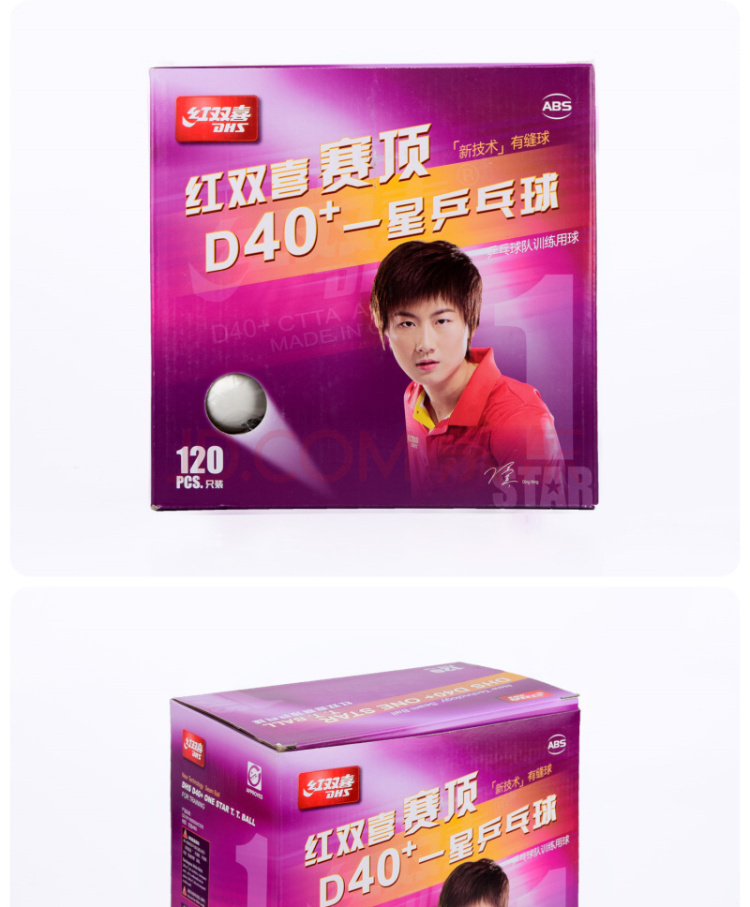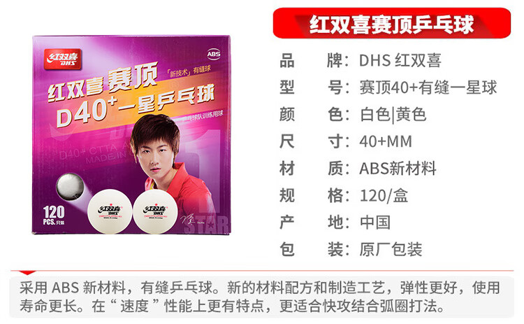 • 红双喜DHS乒乓球一星 40+赛顶ABS 1星训练兵乓球120个实惠装 白色