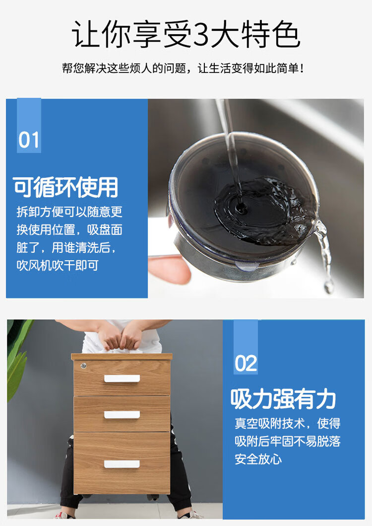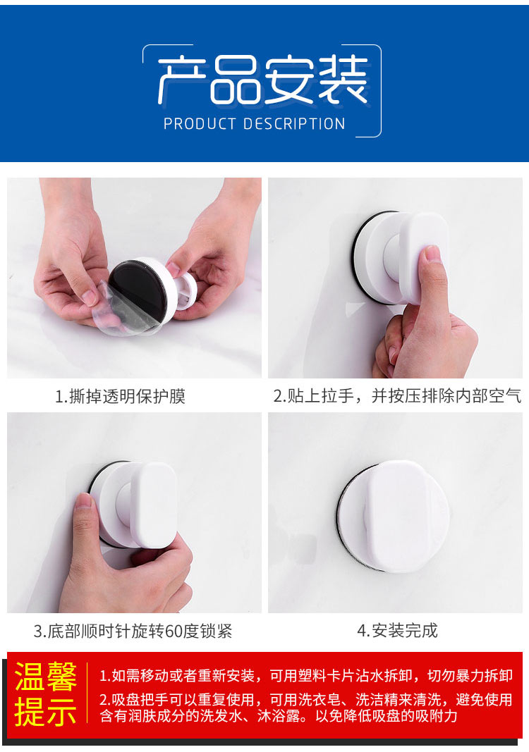 • 巢极佳品 吸盘式无痕门把手浴室安全扶手玻璃移门拉手橱柜衣柜推拉门拉手