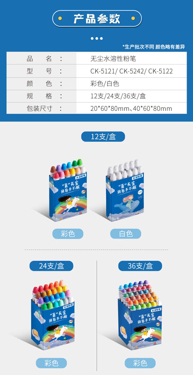 供应商:京东 品牌:DSB 产地:中国大陆 重量:0.205 销售单位:盒 包装清单:水溶性彩色粉笔*24支 售后信息:不支持7天无理由退货