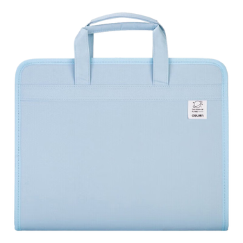 • 得力(deli)A4/13格布质风琴包 多层文件夹学生试卷作业发票收纳袋 办公学习文件资料手提包资料册  浅蓝72561