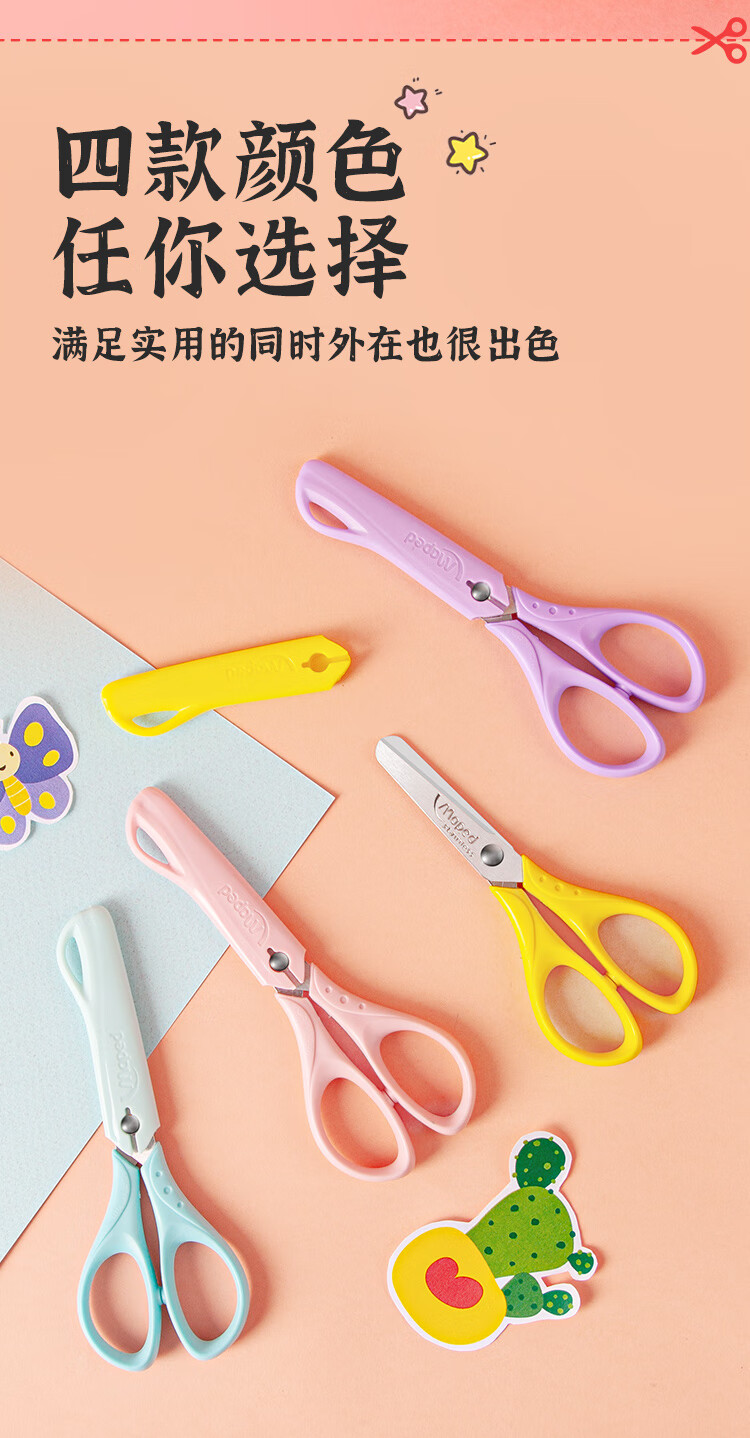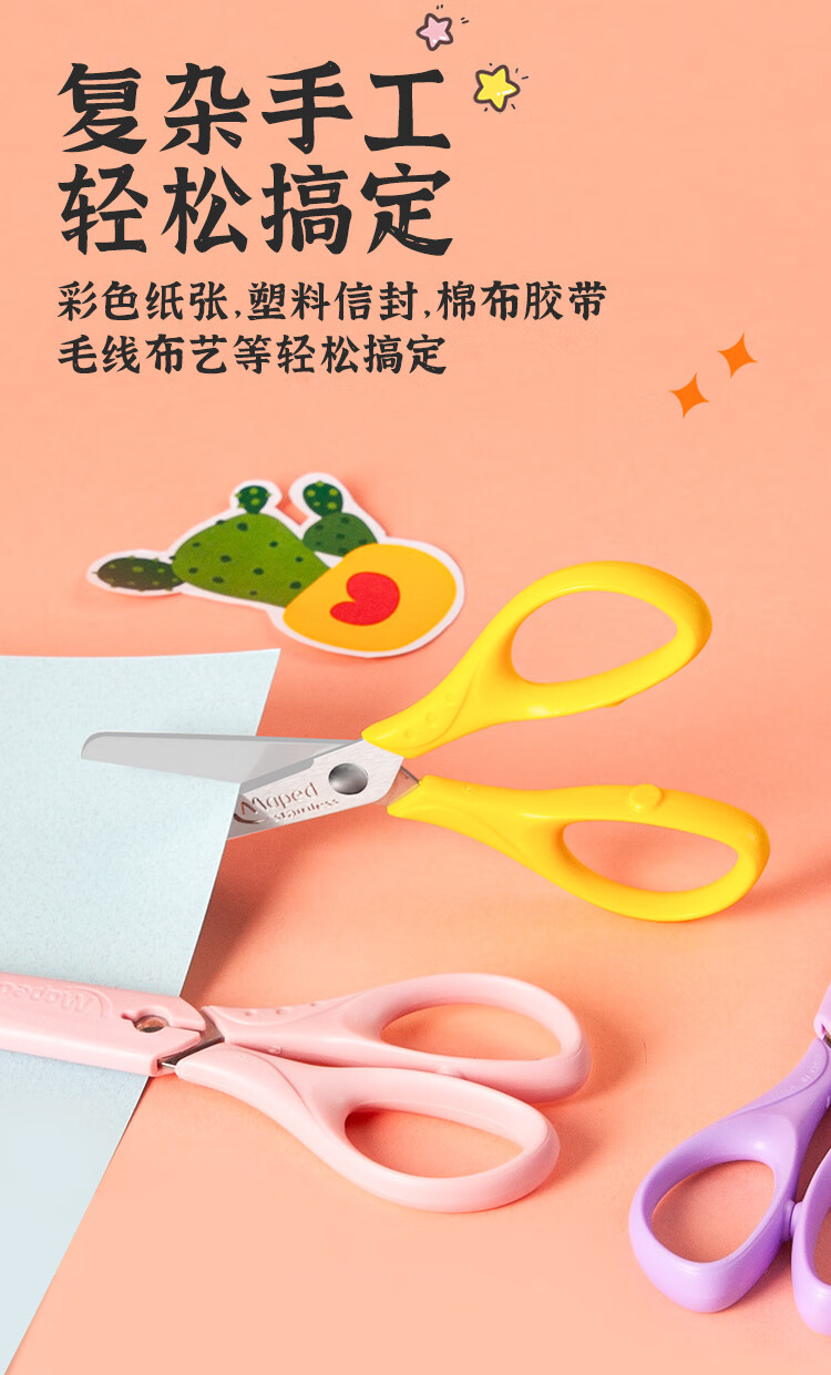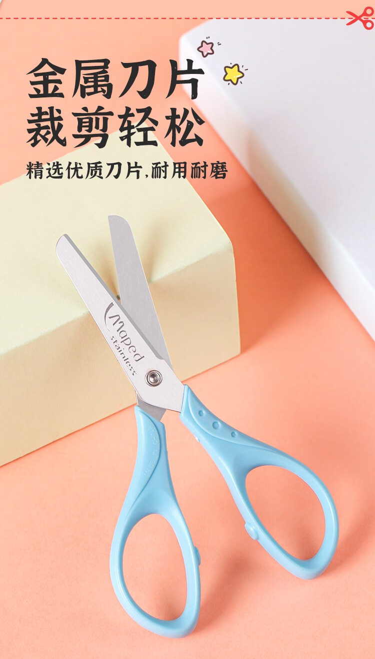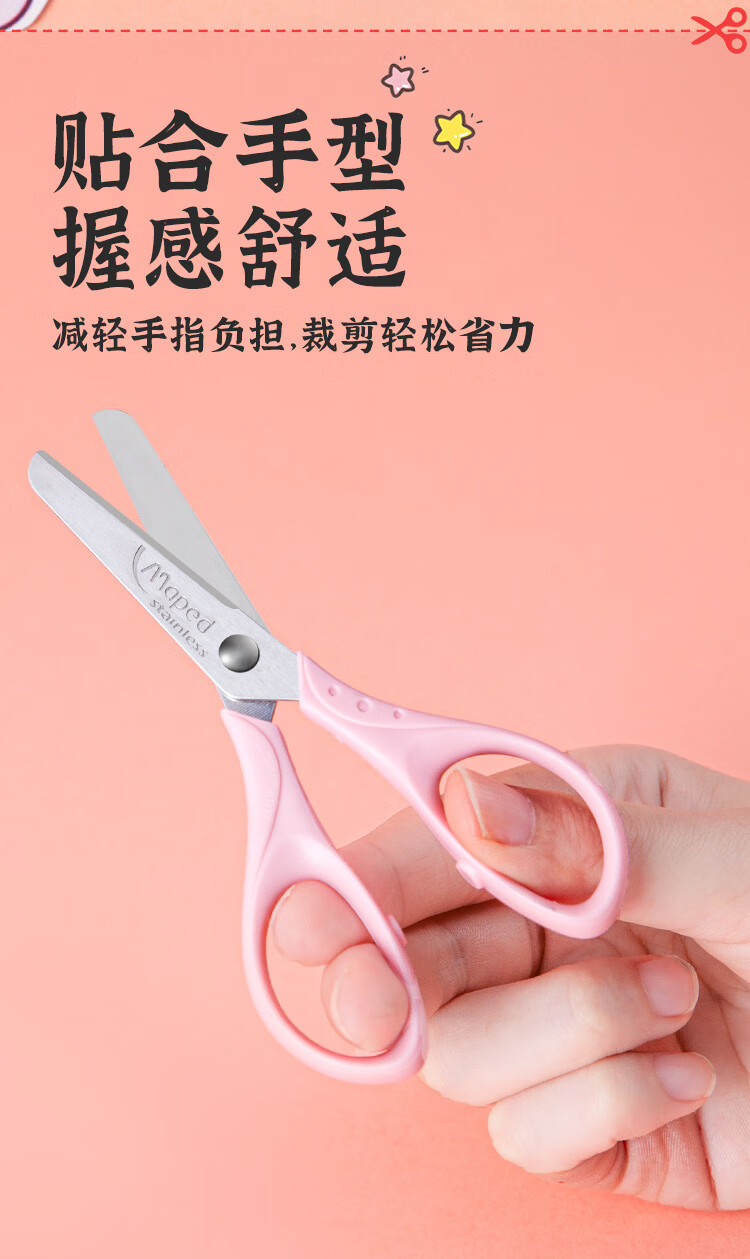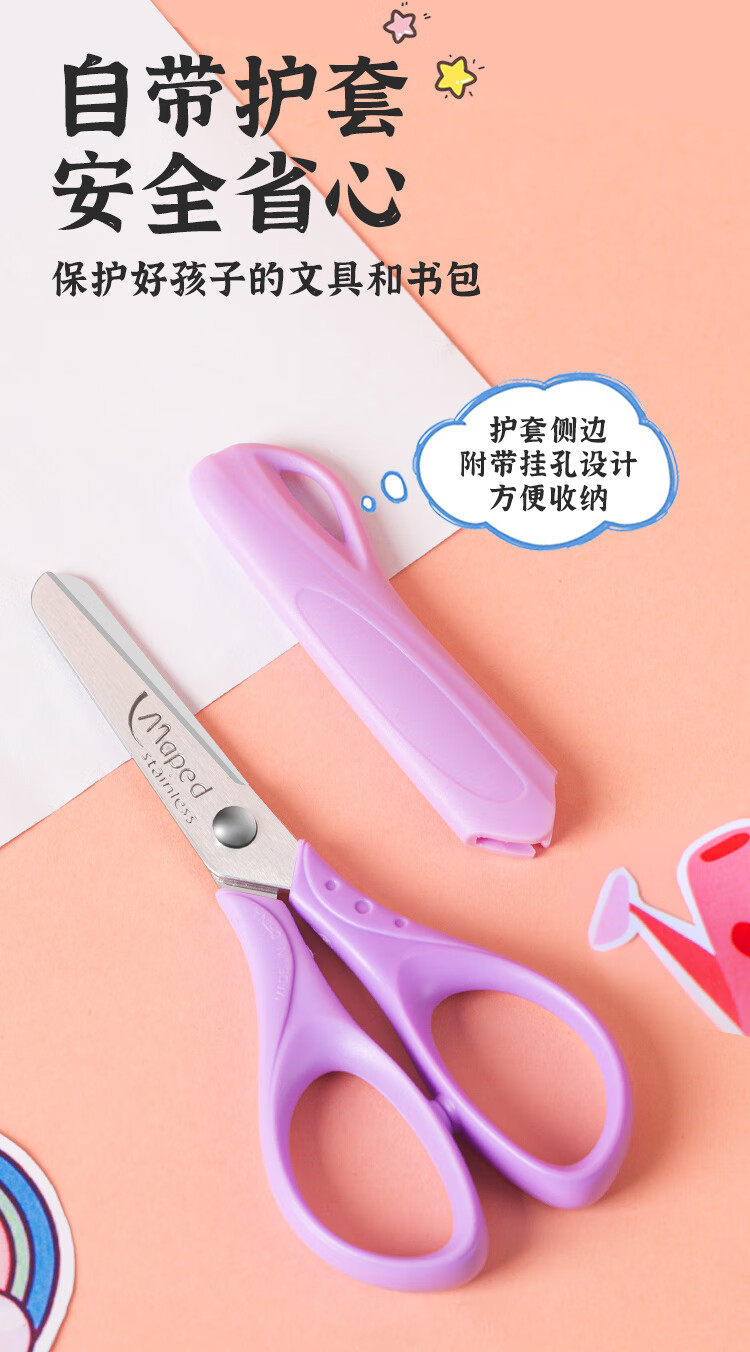 • 马培德(Maped)儿童护套剪刀 学生美工小剪刀 幼儿园手工DIY安全剪纸圆头创意小剪子 12cm带护套463040CH粉色