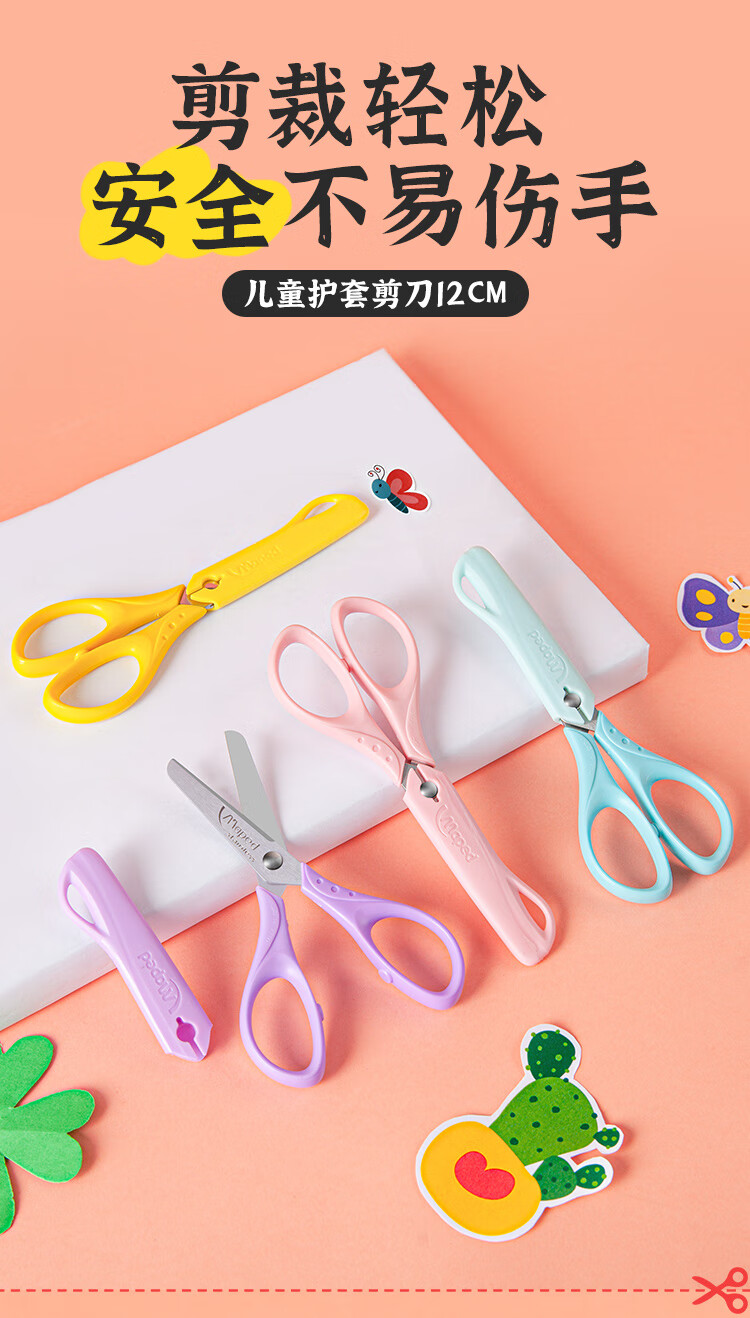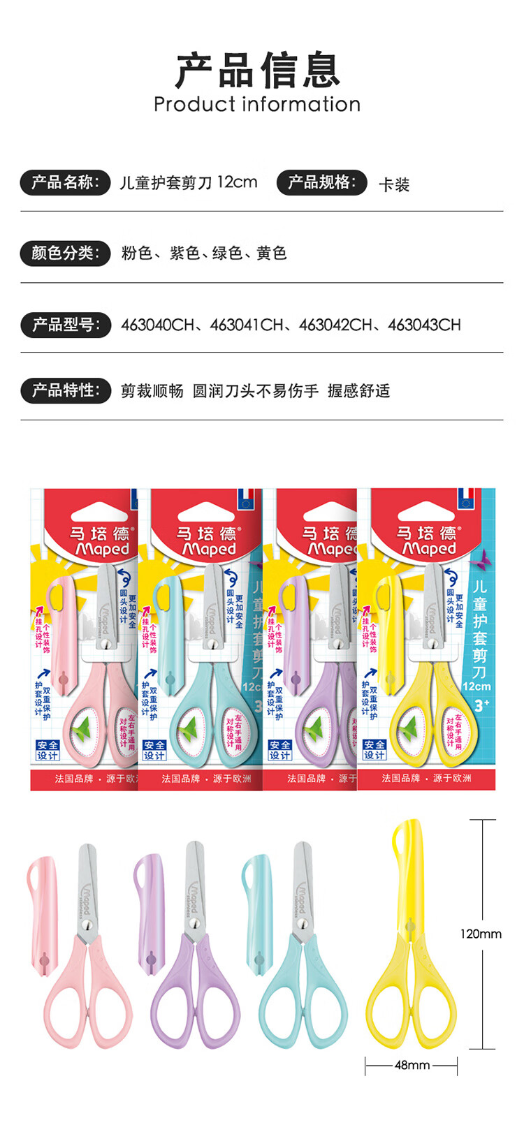 马培德(Maped)儿童护套剪刀 学生美工小剪刀 幼儿园手工DIY安全剪纸圆头创意小剪子 12cm带护套463040CH粉色   收藏