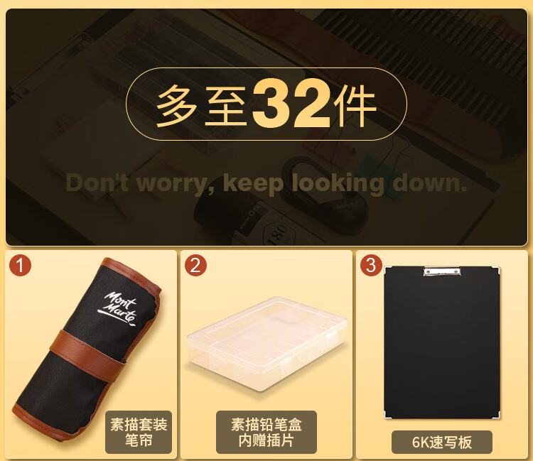 蒙玛特(Mont Marte)素描套装13件 素描铅笔绘画工具画画炭笔素描纸2b4b6b初学者练习写生铅笔套装SX-QBTZ0001 速写 马克笔绘画   收藏