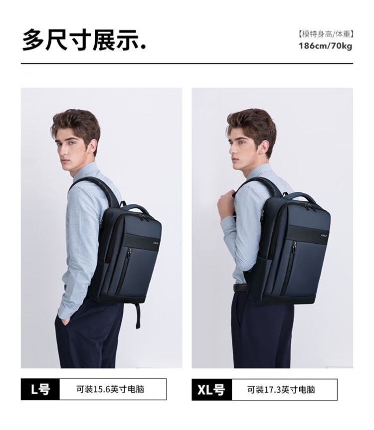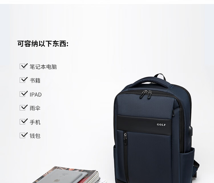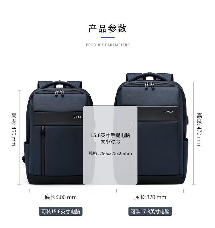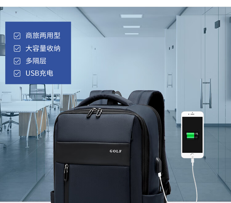 高尔夫(GOLF)商务多功能USB充电加大17.3英寸电脑双肩背包 |