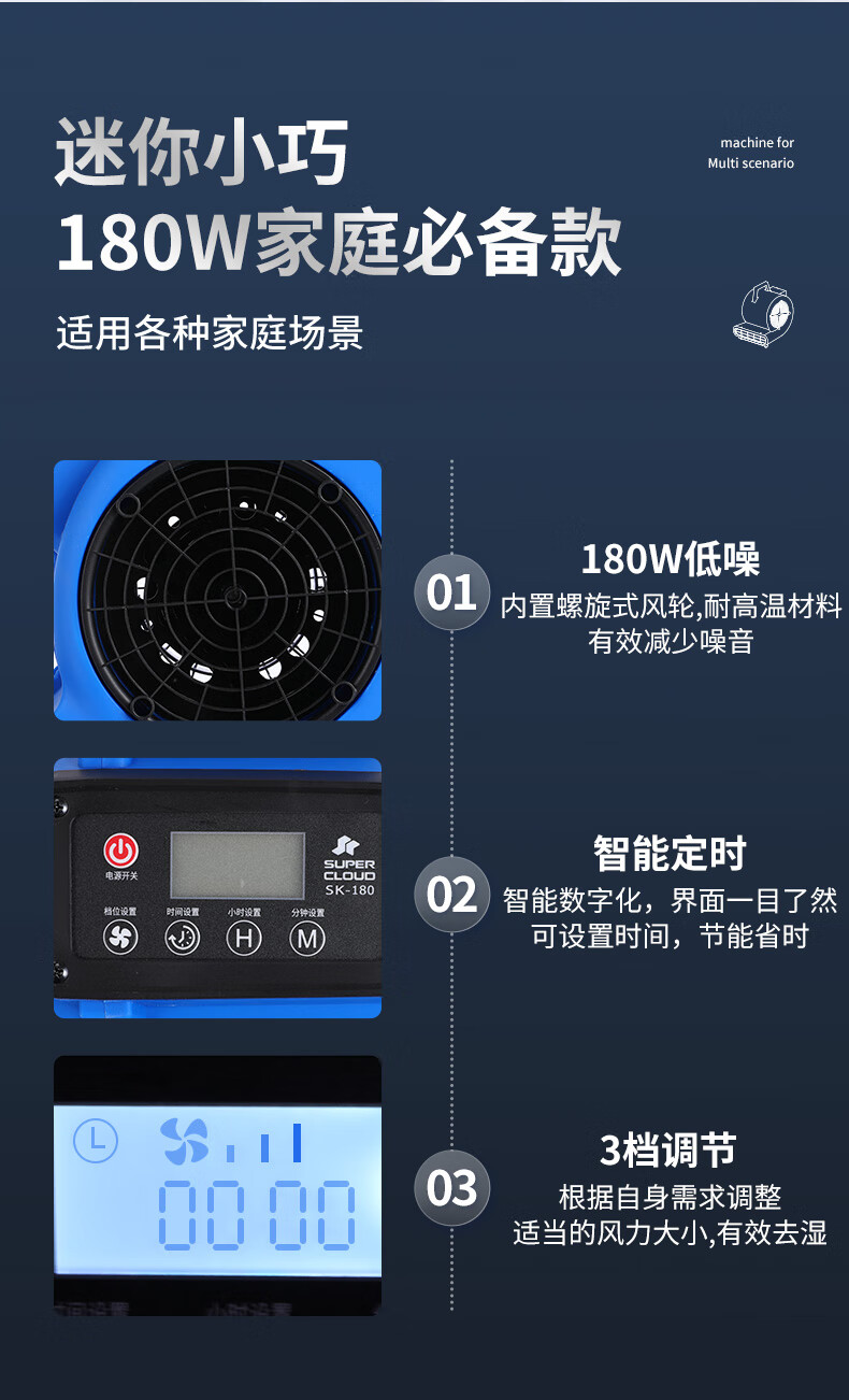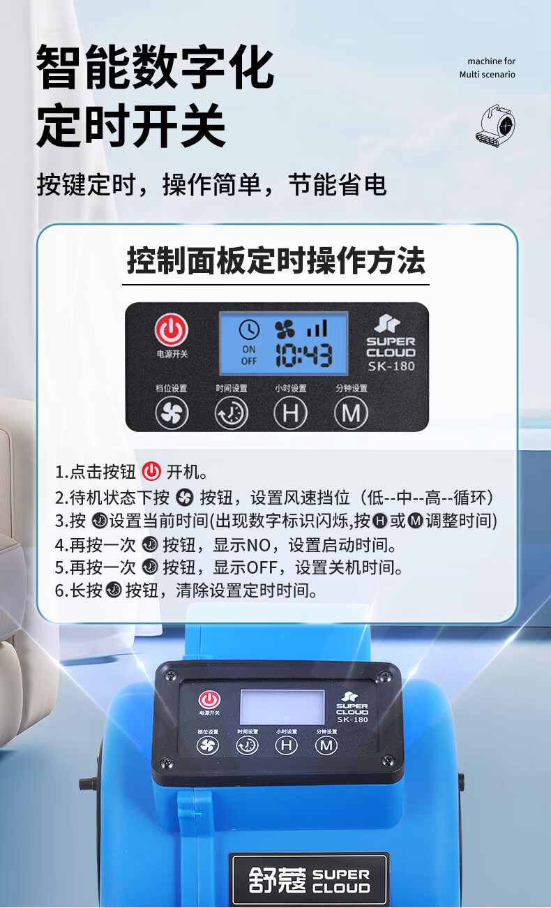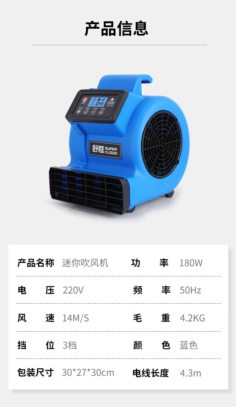 • Supercloud(舒蔻) 吹地机家用智能定时地面吹干机小型厕所吹风机 风速14M/S
