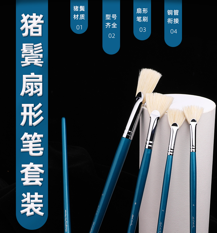 • 【全网低价】蒙玛特(Mont Marte)画笔4支装 画笔套装油画笔颜料画画笔油画颜料丙烯画笔 扇形猪鬃扁峰儿童绘画笔套装美术写生