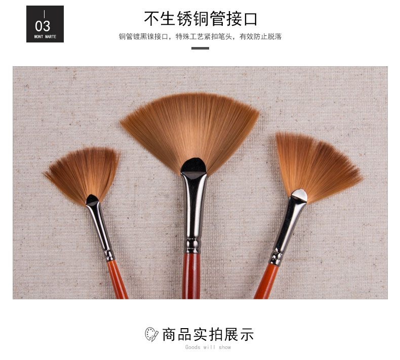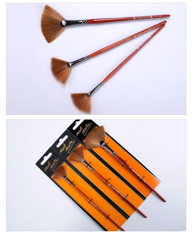 • 【全网低价】蒙玛特(Mont Marte)画笔3支装 扇形笔水粉笔水彩油画丙烯颜料画画笔套装 尼龙美术绘画笔SX-MPB0046+47+48美术写生