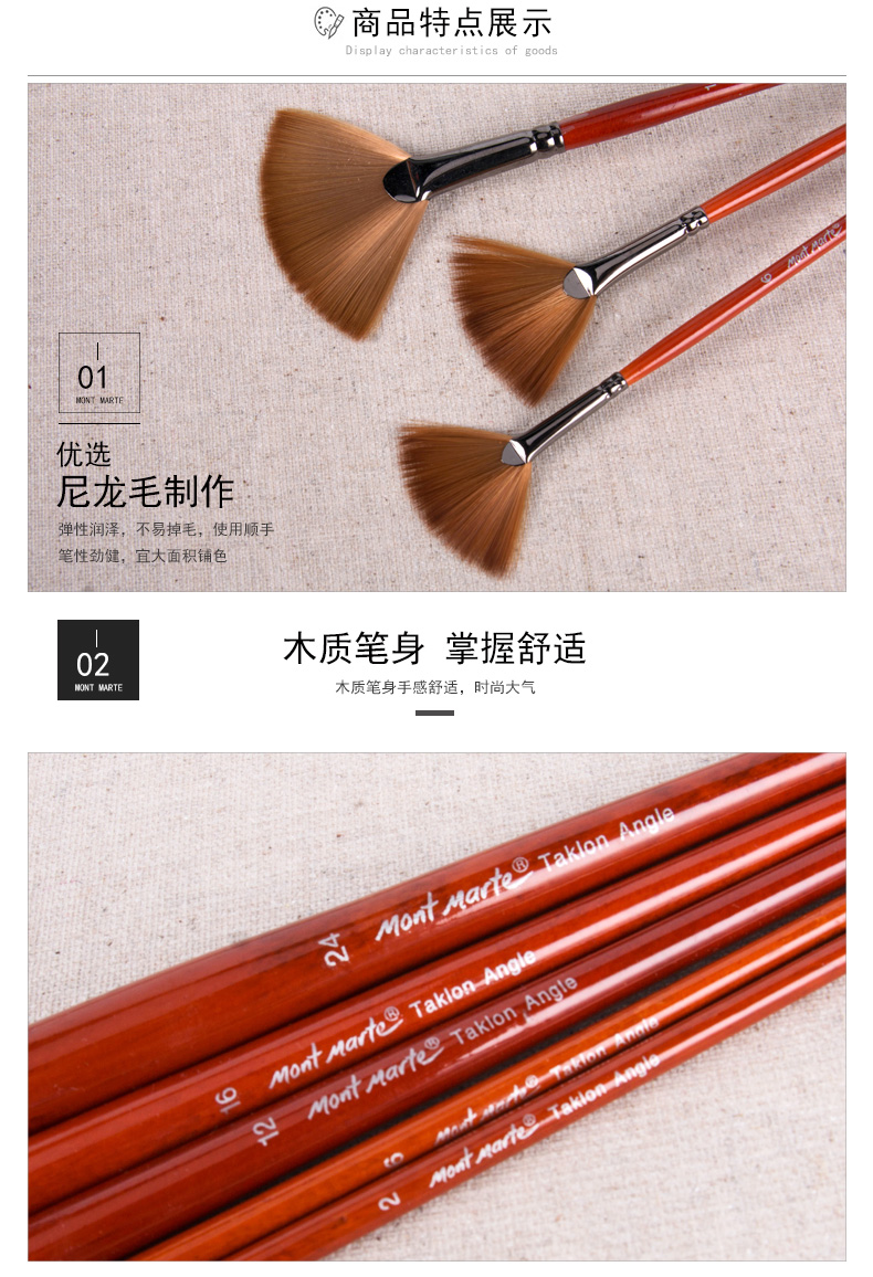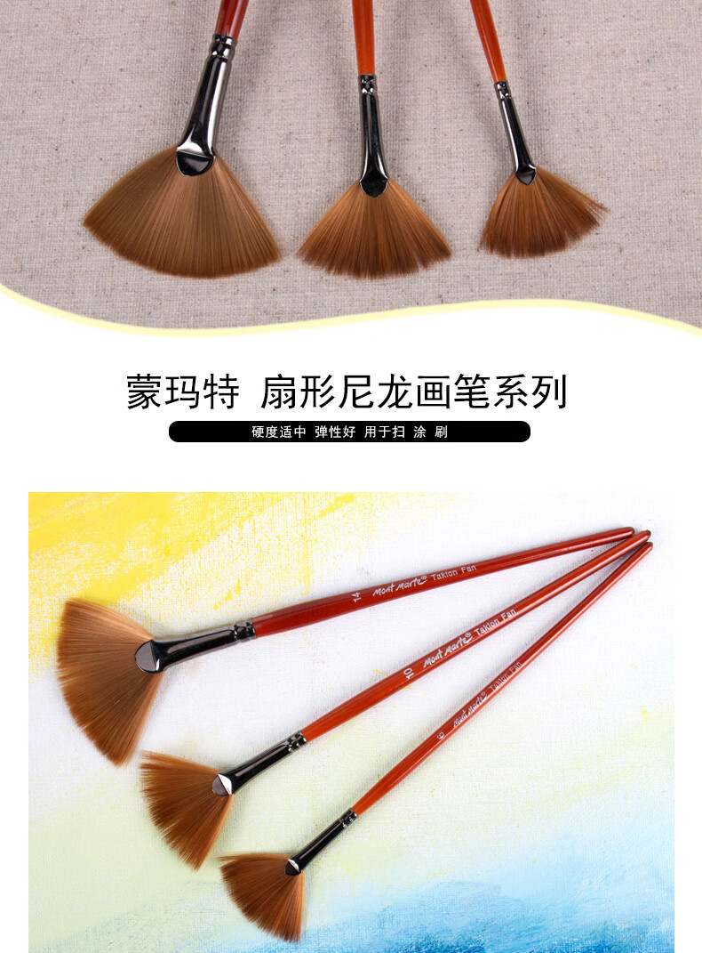 【全网低价】蒙玛特(Mont Marte)画笔3支装 扇形笔水粉笔水彩油画丙烯颜料画画笔套装 尼龙美术绘画笔SX-MPB0046+47+48美术写生   收藏