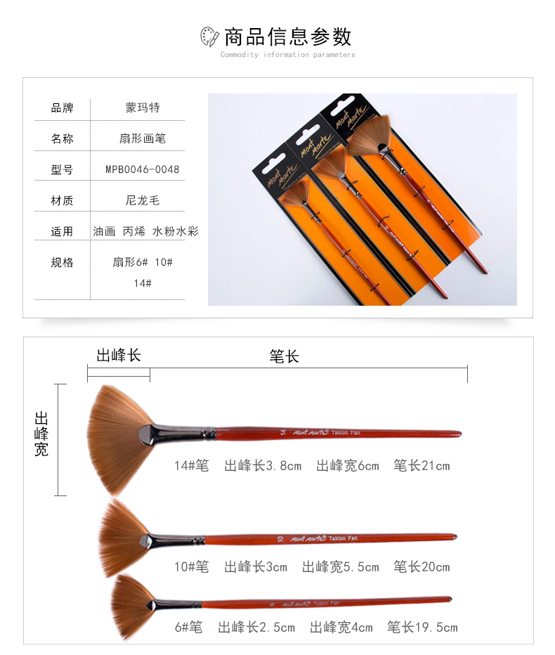供应商:京东 品牌:蒙玛特(Mont Marte) 产地:中国大陆 重量:0.133 销售单位:支 包装清单:6号扇形笔*1 10号扇形笔*1 14号扇形笔*1 售后信息:不支持7天无理由退货