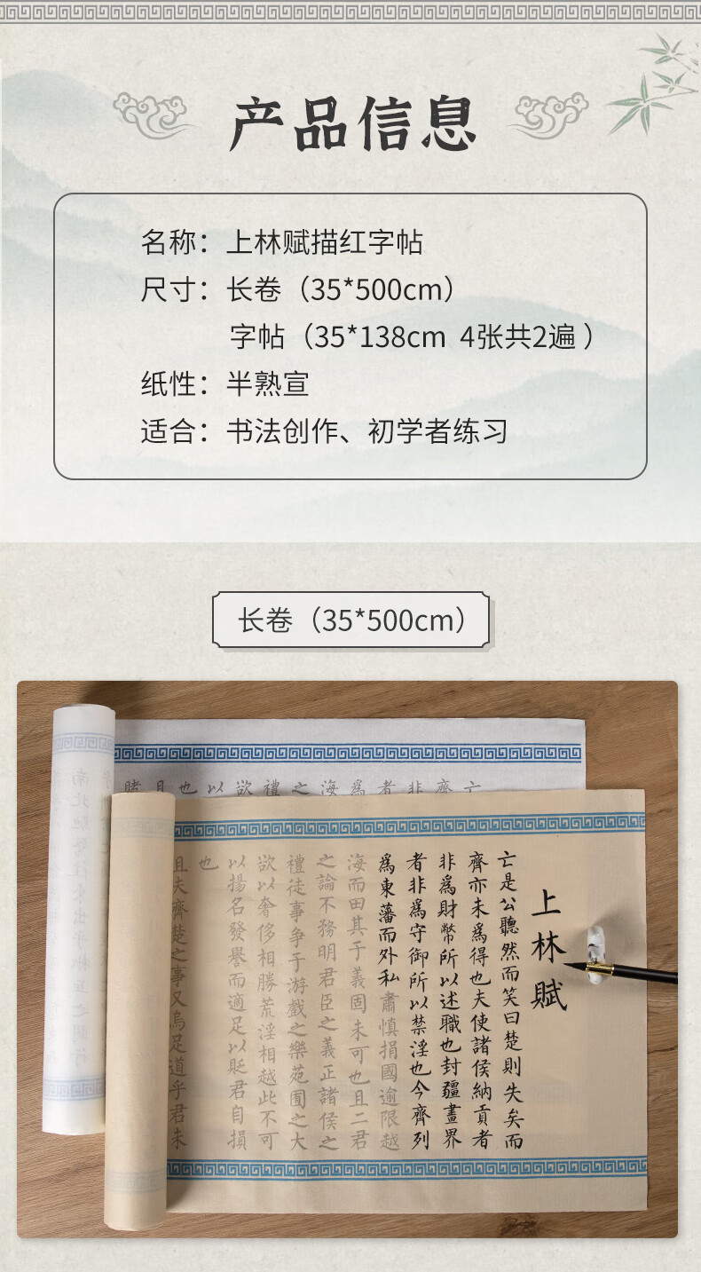 【全网低价,真便宜直播间】南国书香司马相如上林赋长卷毛笔字帖临摹初学者楷书入门描红宣纸套装书法作品纸 5米长卷(白色)   收藏