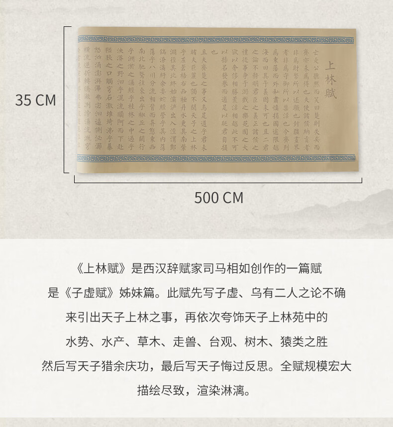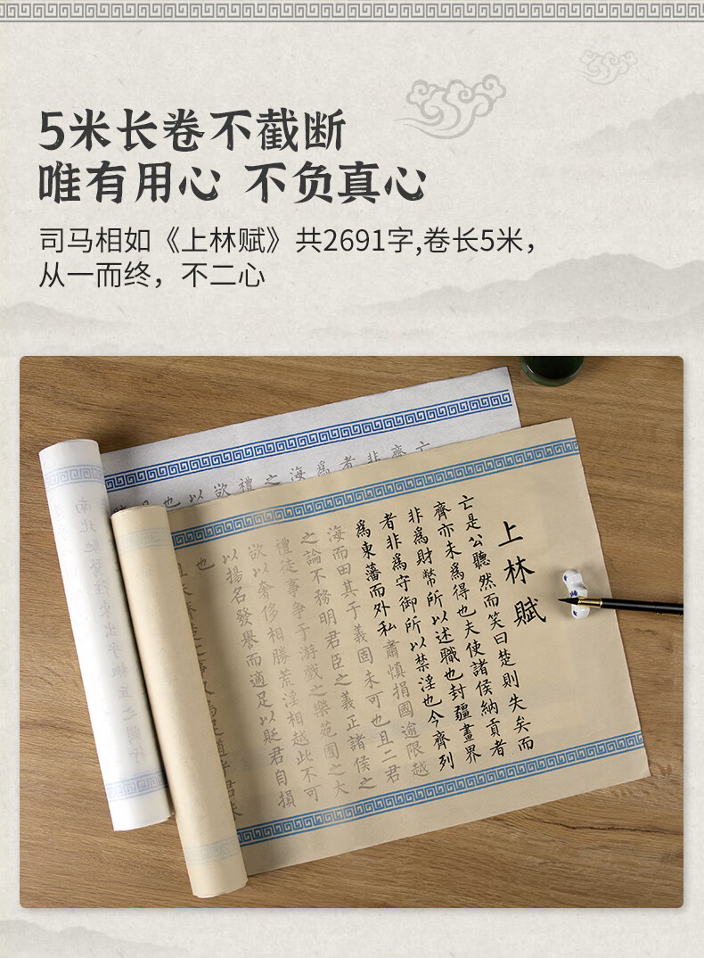 • 【全网低价,真便宜直播间】南国书香司马相如上林赋长卷毛笔字帖临摹初学者楷书入门描红宣纸套装书法作品纸 5米长卷(白色)