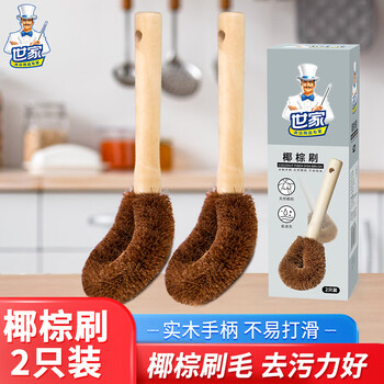 • 世家天然椰棕洗锅刷子2只 长柄刷锅厨房去污清洁刷锅