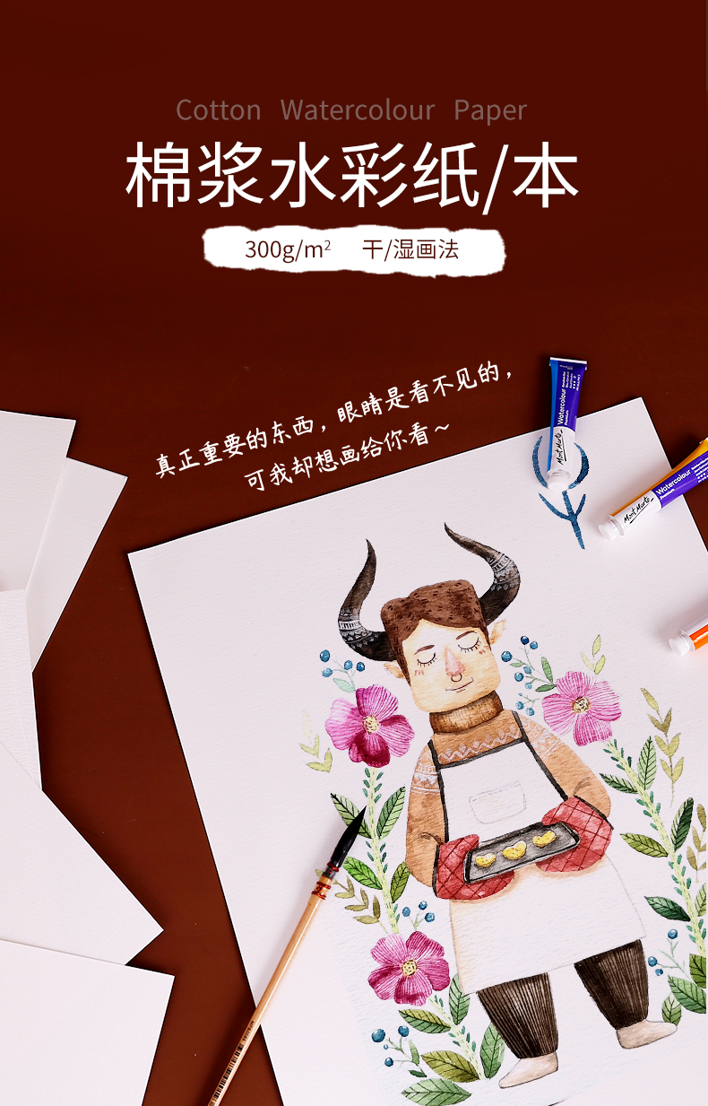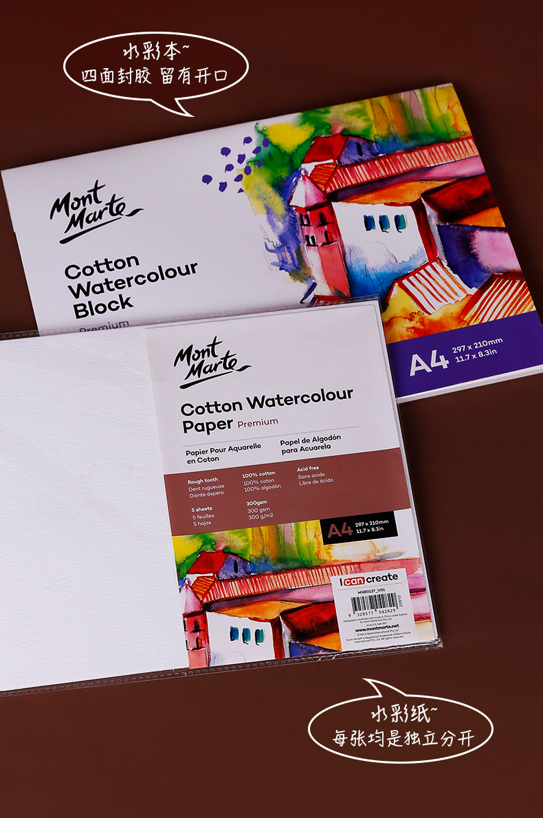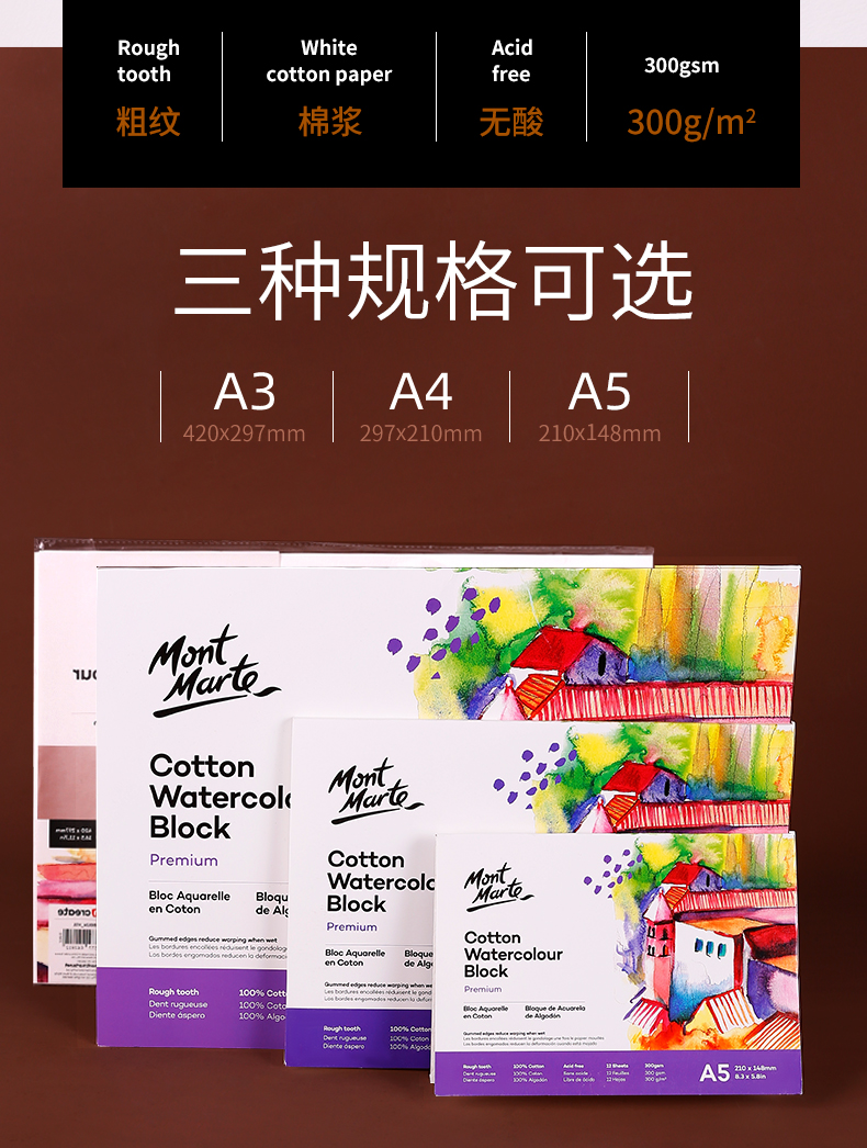 • 【全网低价】蒙玛特(Mont Marte)棉浆水彩纸300g 美术画画a4画纸水彩颜料画画纸 加厚美术生绘画色彩绘画空白纸MSB0127美术写生