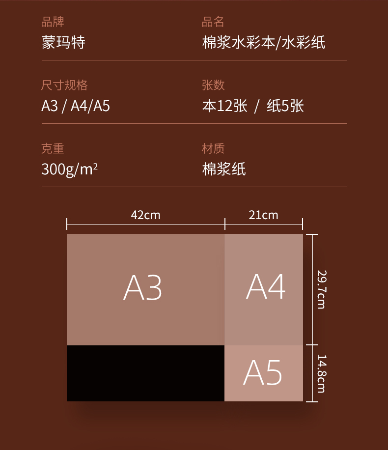 供应商:京东 品牌:蒙玛特(Mont Marte) 产地:中国大陆 重量:0.100 销售单位:包 包装清单:A4水彩纸300g*1 售后信息:不支持7天无理由退货