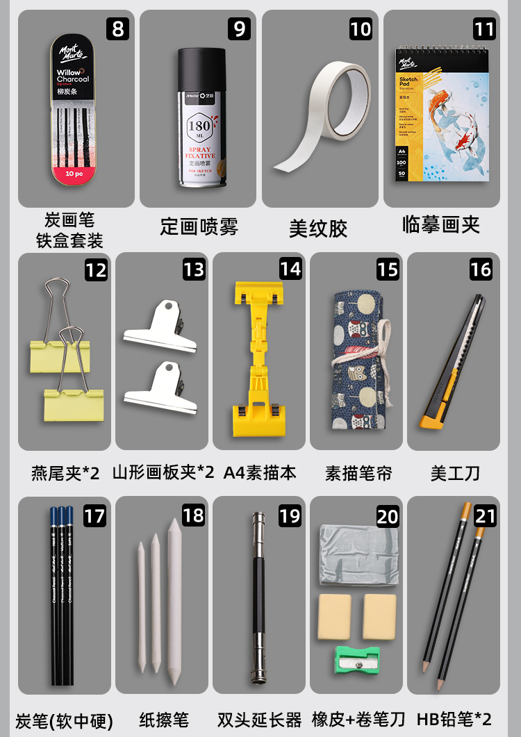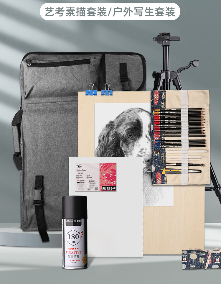 • 蒙玛特(Mont Marte)素描套装 画板4k素描铅笔炭笔画纸画本笔帘木炭条纸擦笔延长器美工刀橡皮夹子画包全套V速写素描