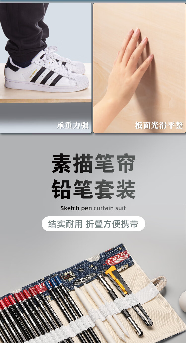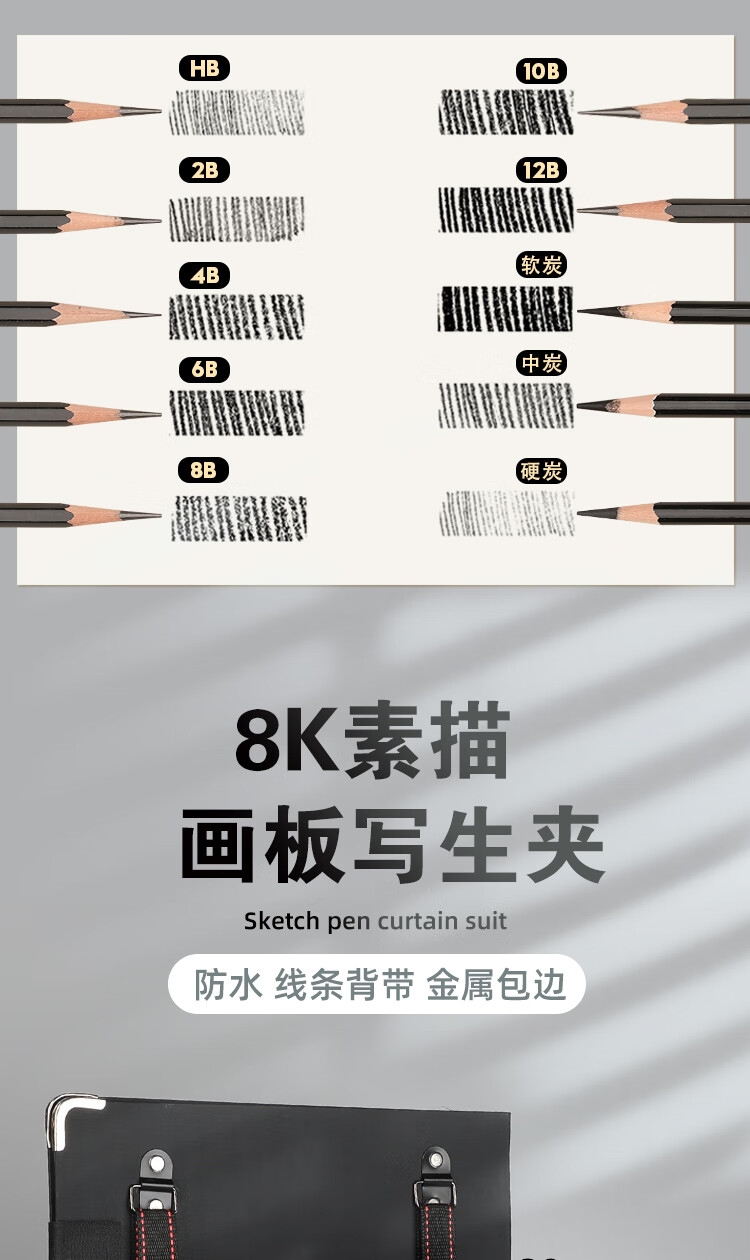 蒙玛特(Mont Marte)素描套装 画板4k素描铅笔炭笔画纸画本笔帘木炭条纸擦笔延长器美工刀橡皮夹子画包全套V速写素描   收藏