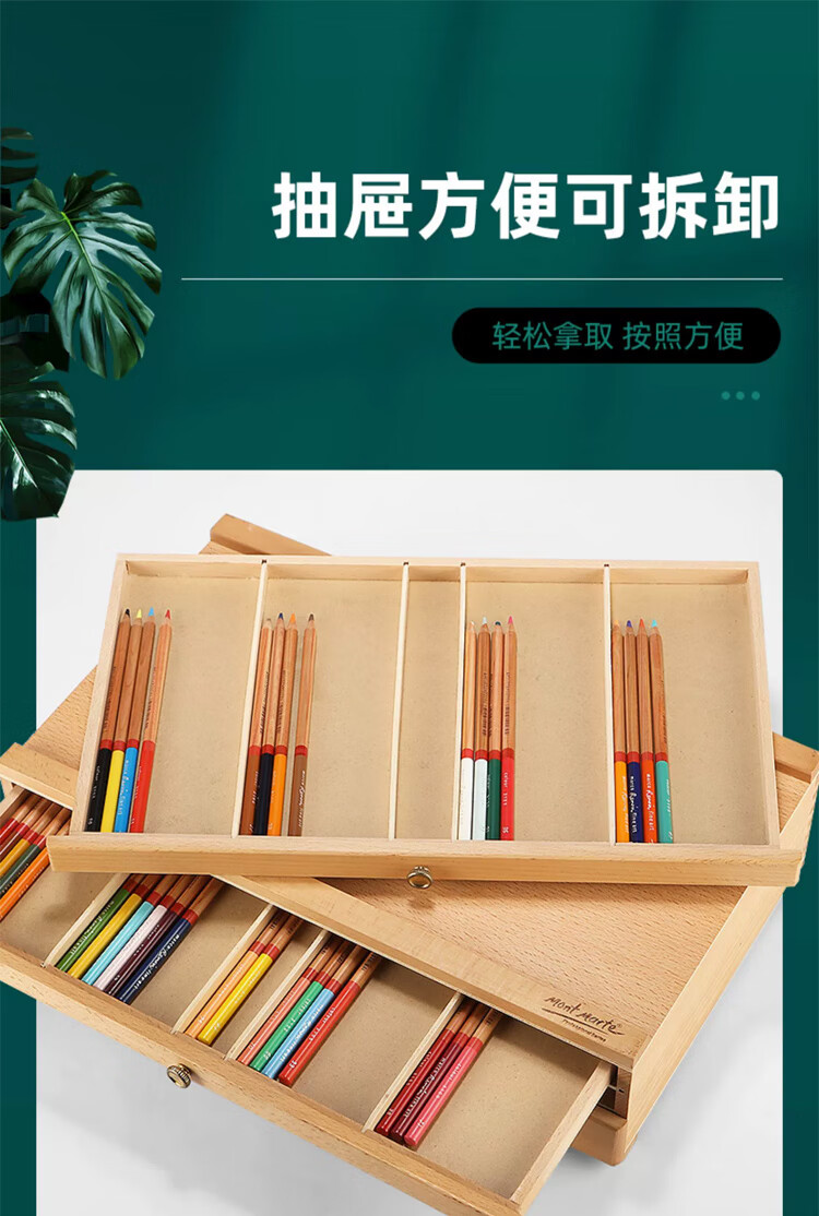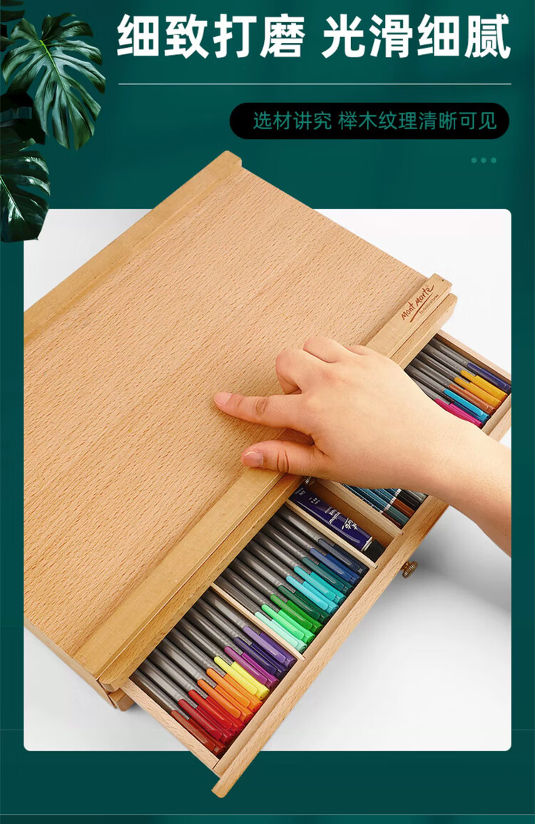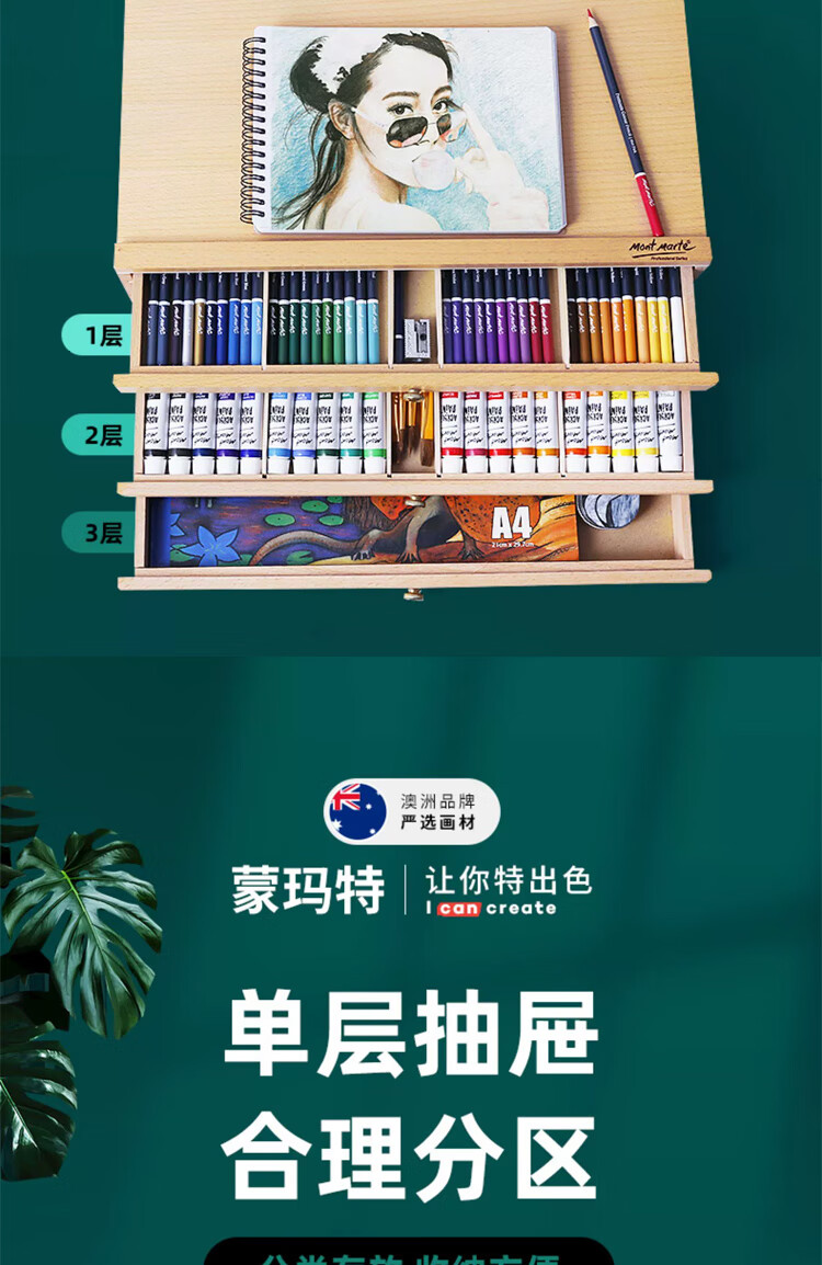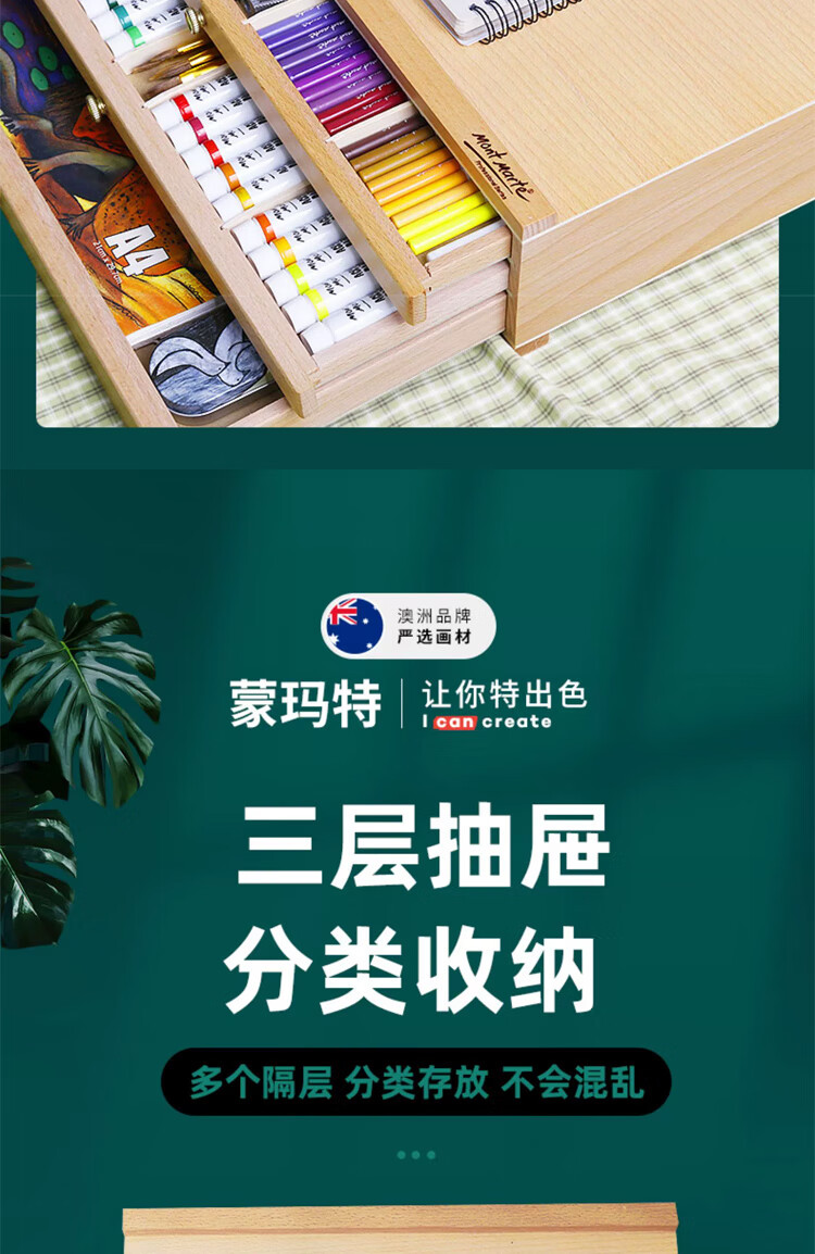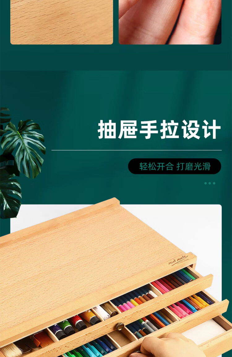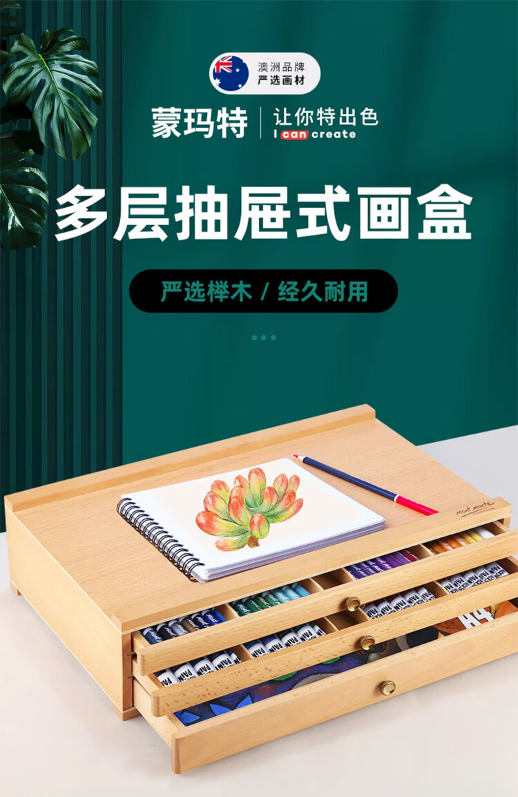 蒙玛特(MontMarte)榆木画箱3层抽屉画盒颜料画笔铅笔套装收纳盒大容量桌面绘画工具储物箱美术收纳箱V   收藏