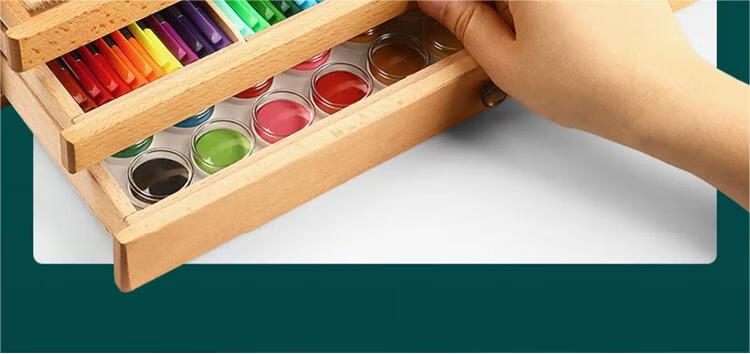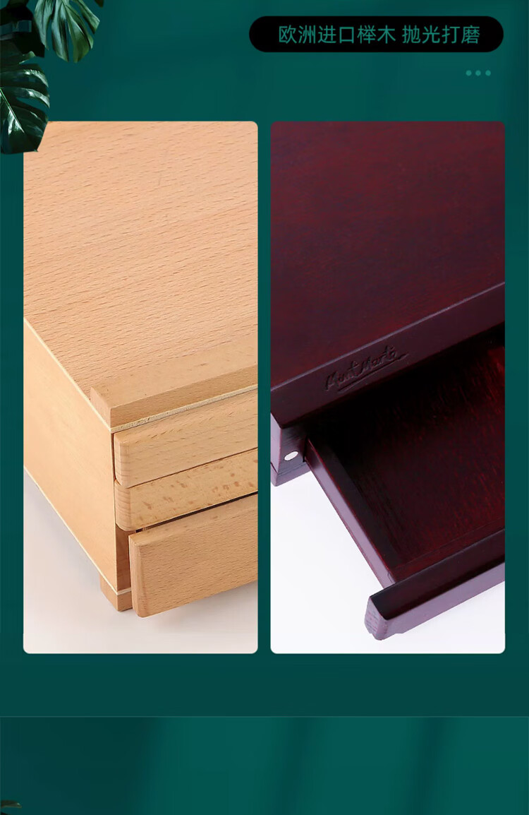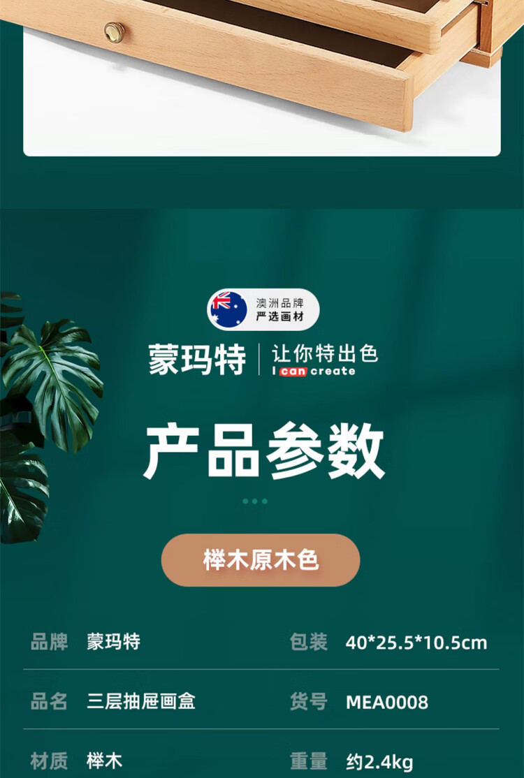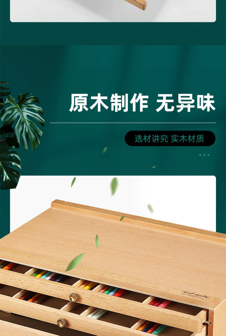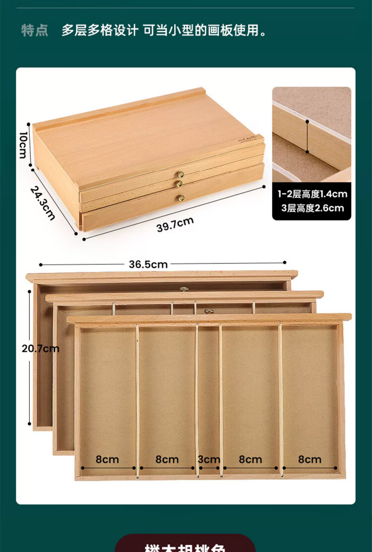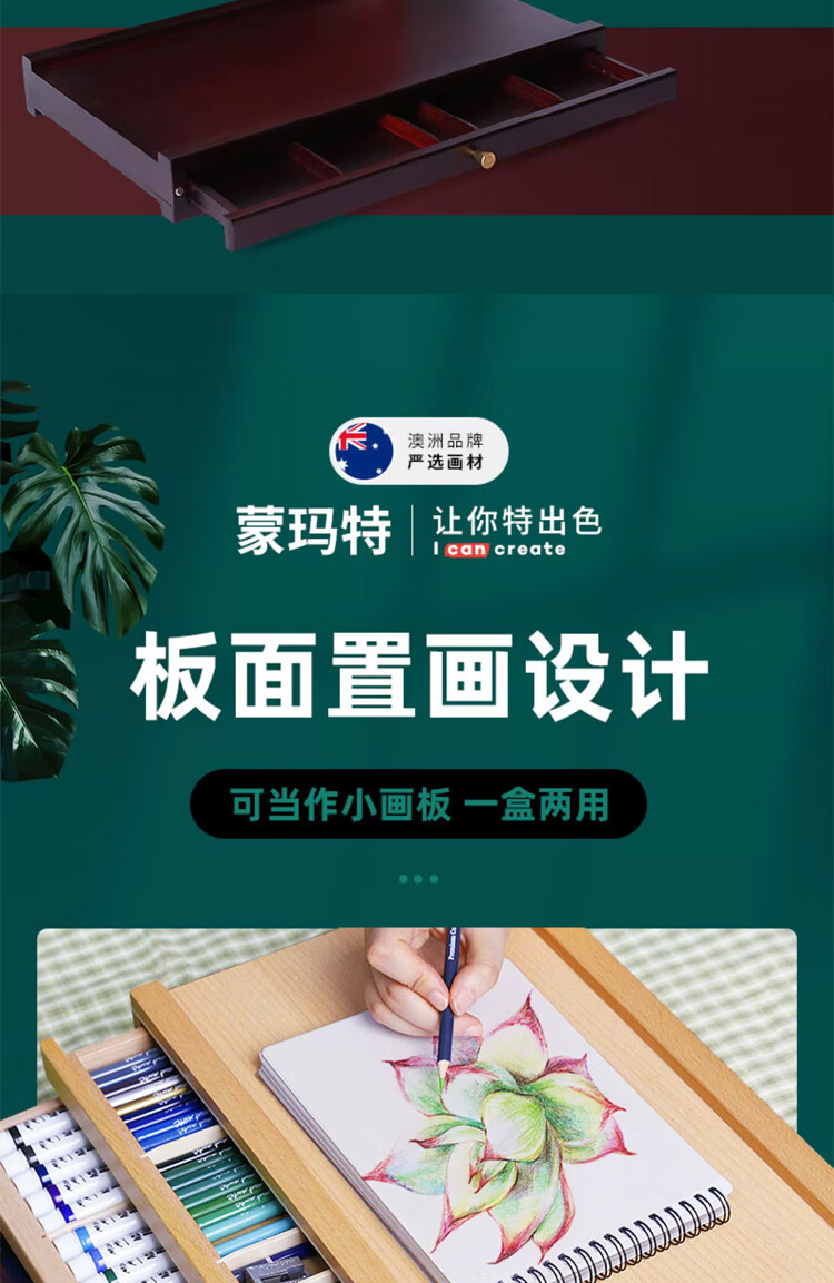 蒙玛特(MontMarte)榆木画箱3层抽屉画盒颜料画笔铅笔套装收纳盒大容量桌面绘画工具储物箱美术收纳箱V   收藏