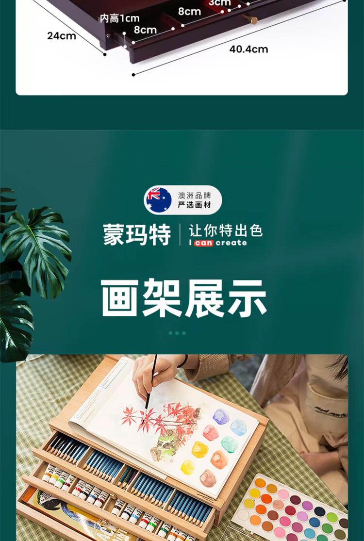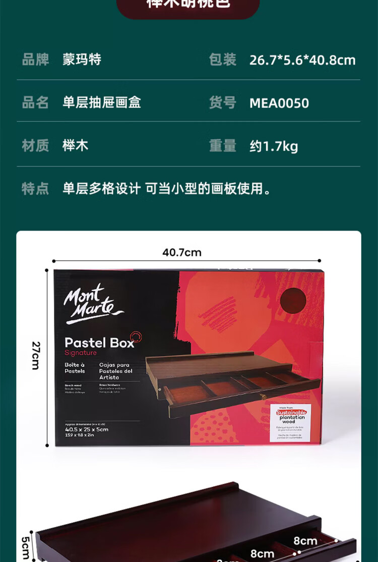 供应商:京东 品牌:蒙玛特(Mont Marte) 产地:中国大陆 重量:2.300 销售单位:个 包装清单:榆木抽屉画箱*1 售后信息:不支持7天无理由退货