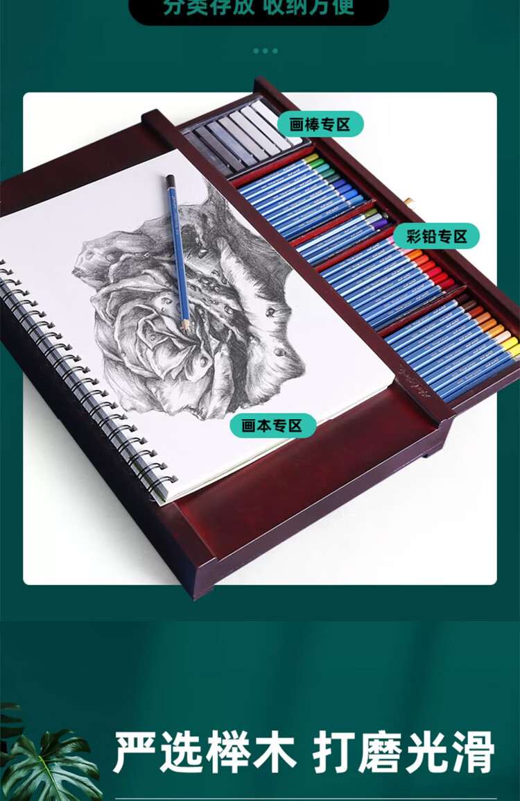 • 蒙玛特(MontMarte)榆木画箱3层抽屉画盒颜料画笔铅笔套装收纳盒大容量桌面绘画工具储物箱美术收纳箱V