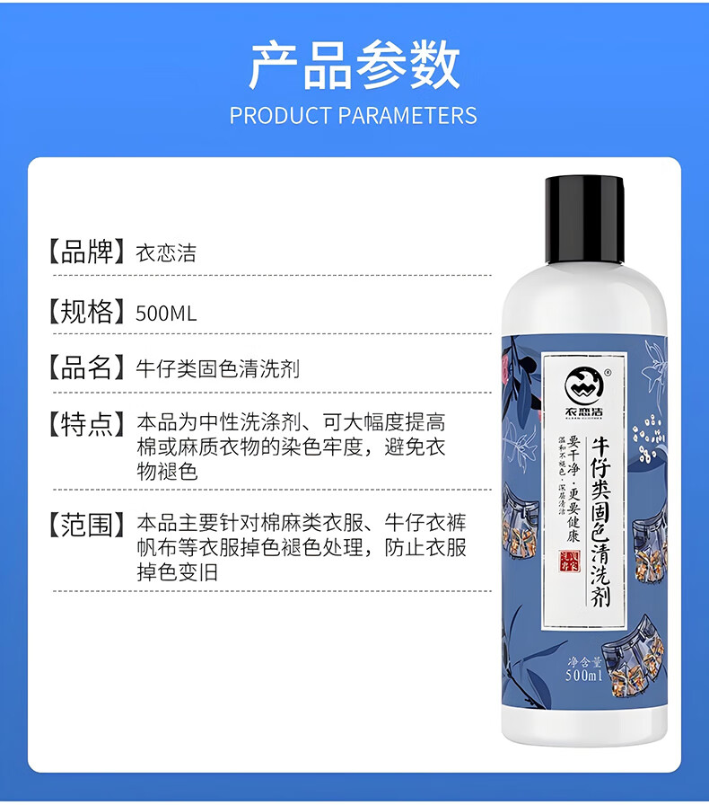 • 衣恋洁衣服固色剂300ml新衣棉麻牛仔裤防掉色锁色易褪色衣物增深增艳剂