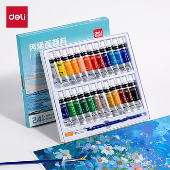 • 得力(deli)丙烯颜料24色5ml初学入门美术绘画套装画画改鞋写生黑板报墙绘出游手绘礼物73915热门商品