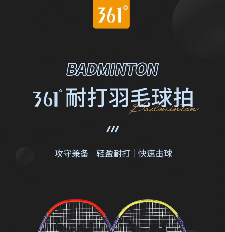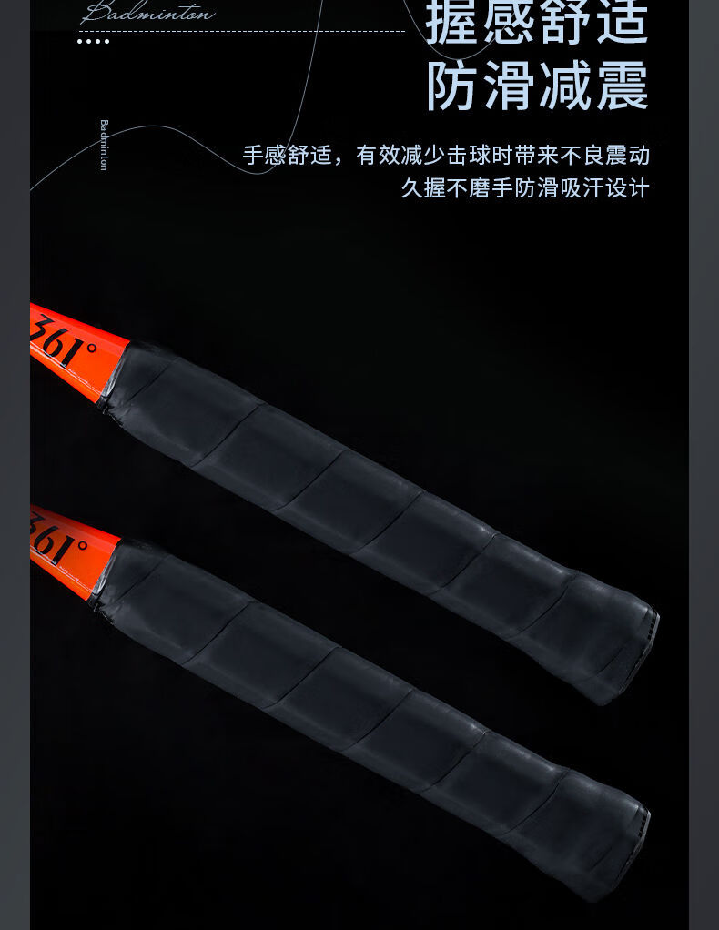 • 361°羽毛球拍套装含羽毛球专业训练一体双拍已穿线含手胶 橙黄双拍