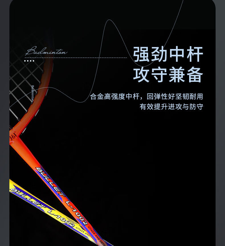 361°羽毛球拍套装含羽毛球专业训练一体双拍已穿线含手胶 橙黄双拍   收藏
