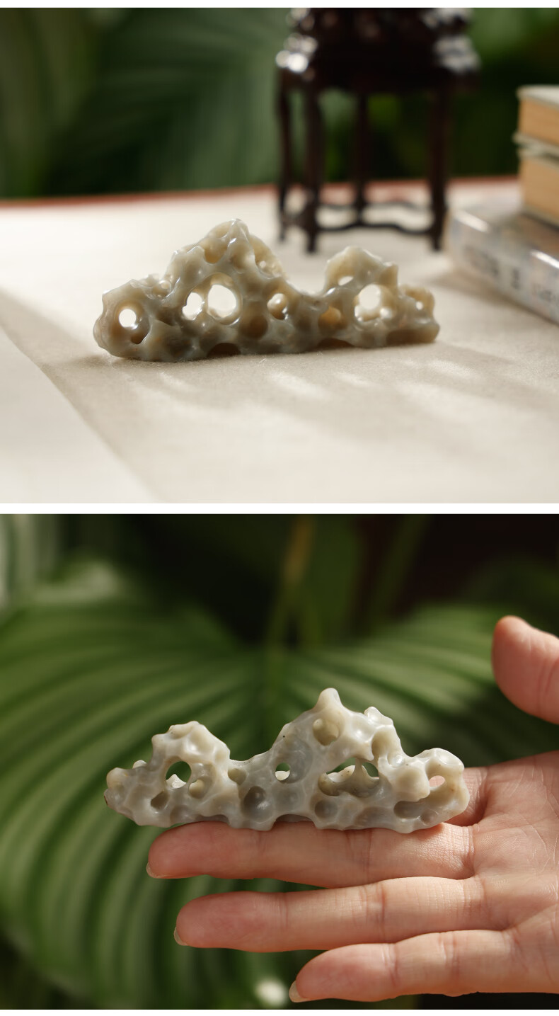 弘梅【全网低价】手工孤品毛笔笔架 中国太湖玉石笔搁笔山 文房四宝书法国画用品   收藏
