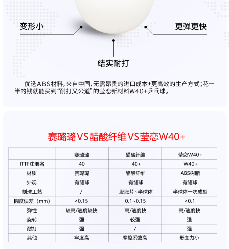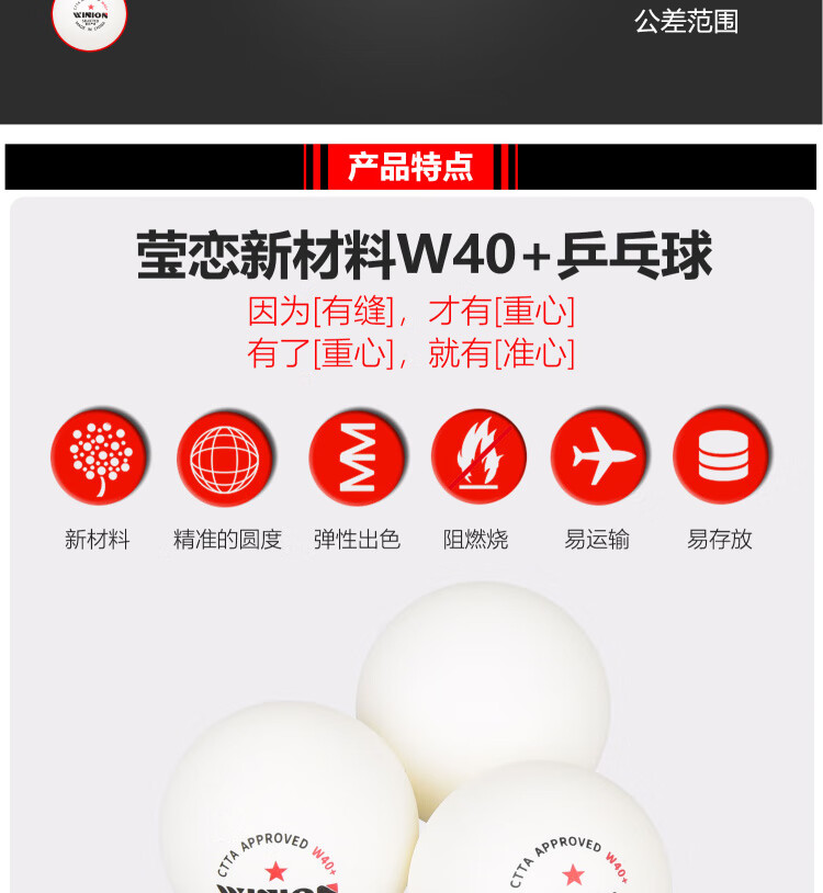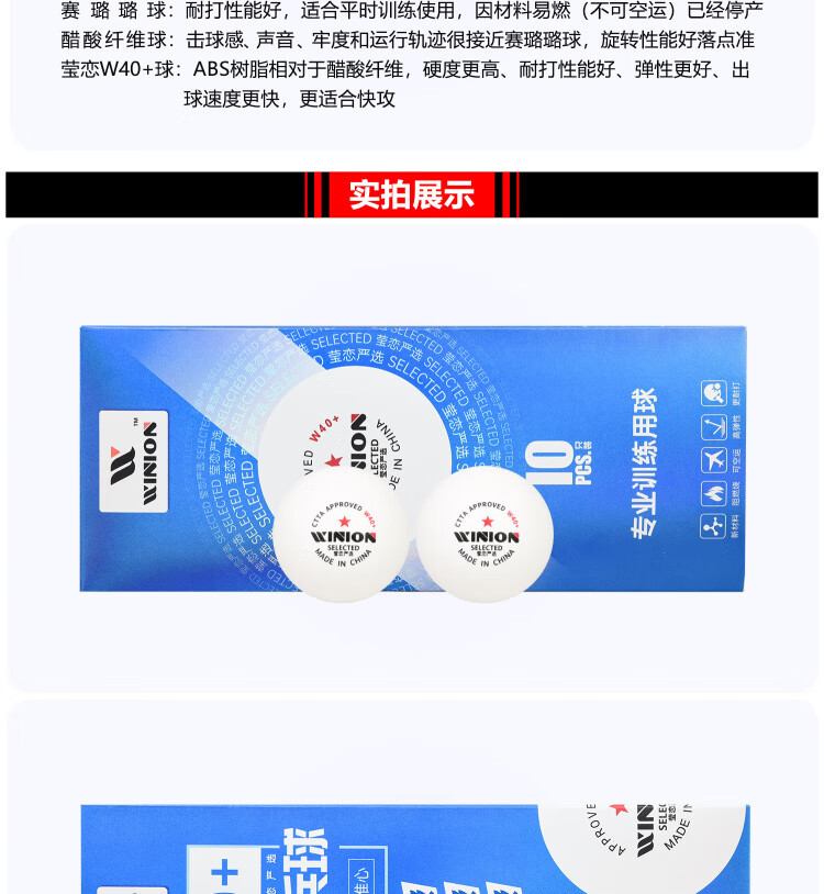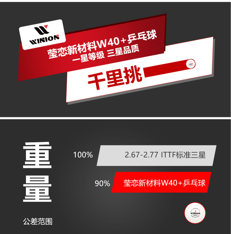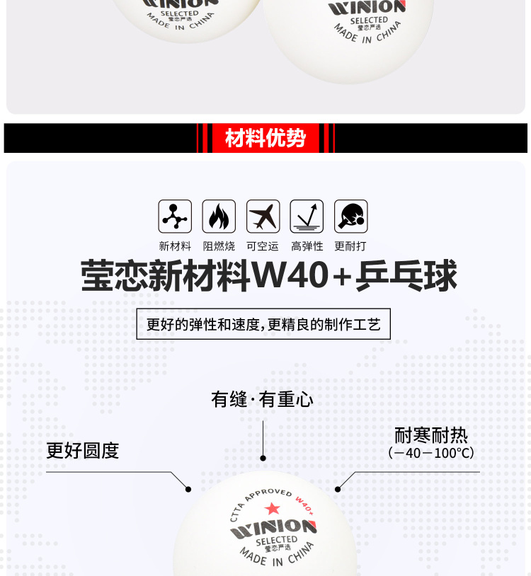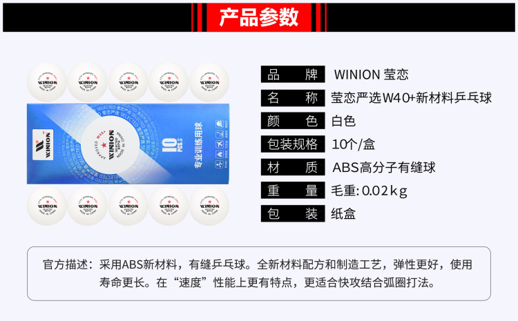 • 莹恋WINION严选乒乓球一星W40+新材料1星比赛训练用球白色30只装