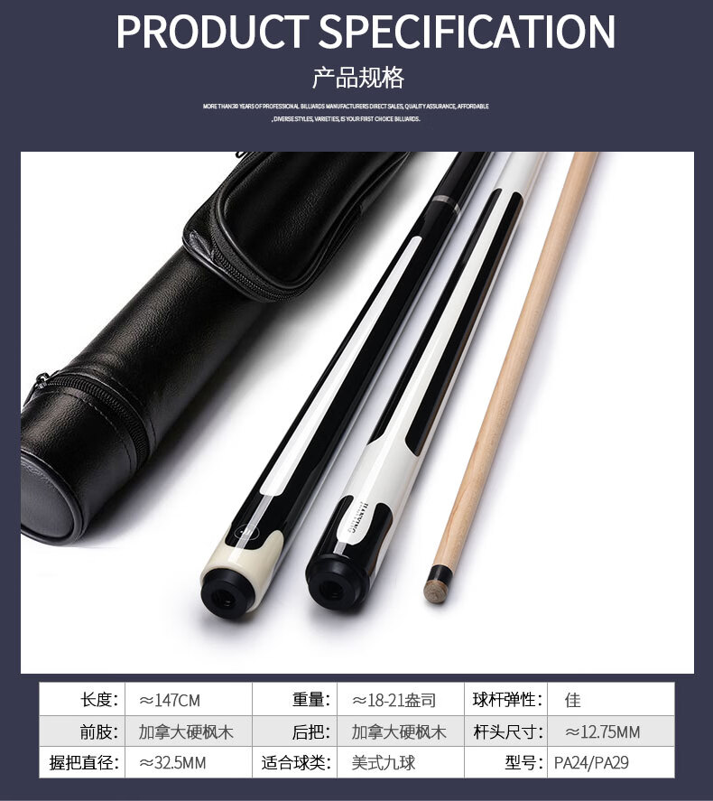 健英 JIANYING 台球杆美式九球杆大头杆16彩桌球杆 PA24黑 13MM   收藏