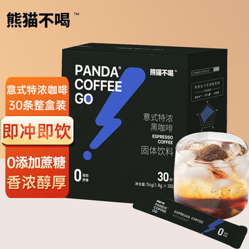 • 熊猫不喝 黑咖啡30条意式特浓云南小粒黑咖啡0添加蔗糖0脂健身速溶咖啡粉