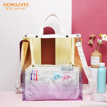 国誉(KOKUYO)透明手提包PVC托特包大容量防泼水书包轻便透明果冻背包补习袋初晴黄紫 WSG-KBV12YV   收藏