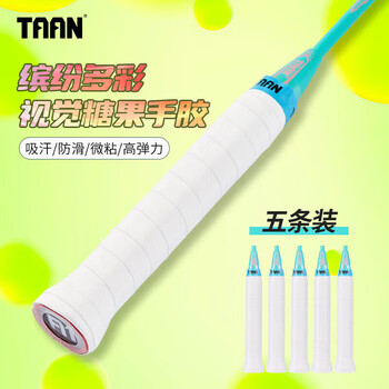 • TAAN泰昂羽毛球拍手胶吸汗带微粘性糖果手胶TW880白色5条装