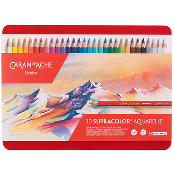 • 凯兰帝(CARAN  d'ACHE)【热卖商品】瑞士卡达 水溶性彩色铅笔绘画套装 SUPRACOLOR铁盒装30色 3888330 速写素描