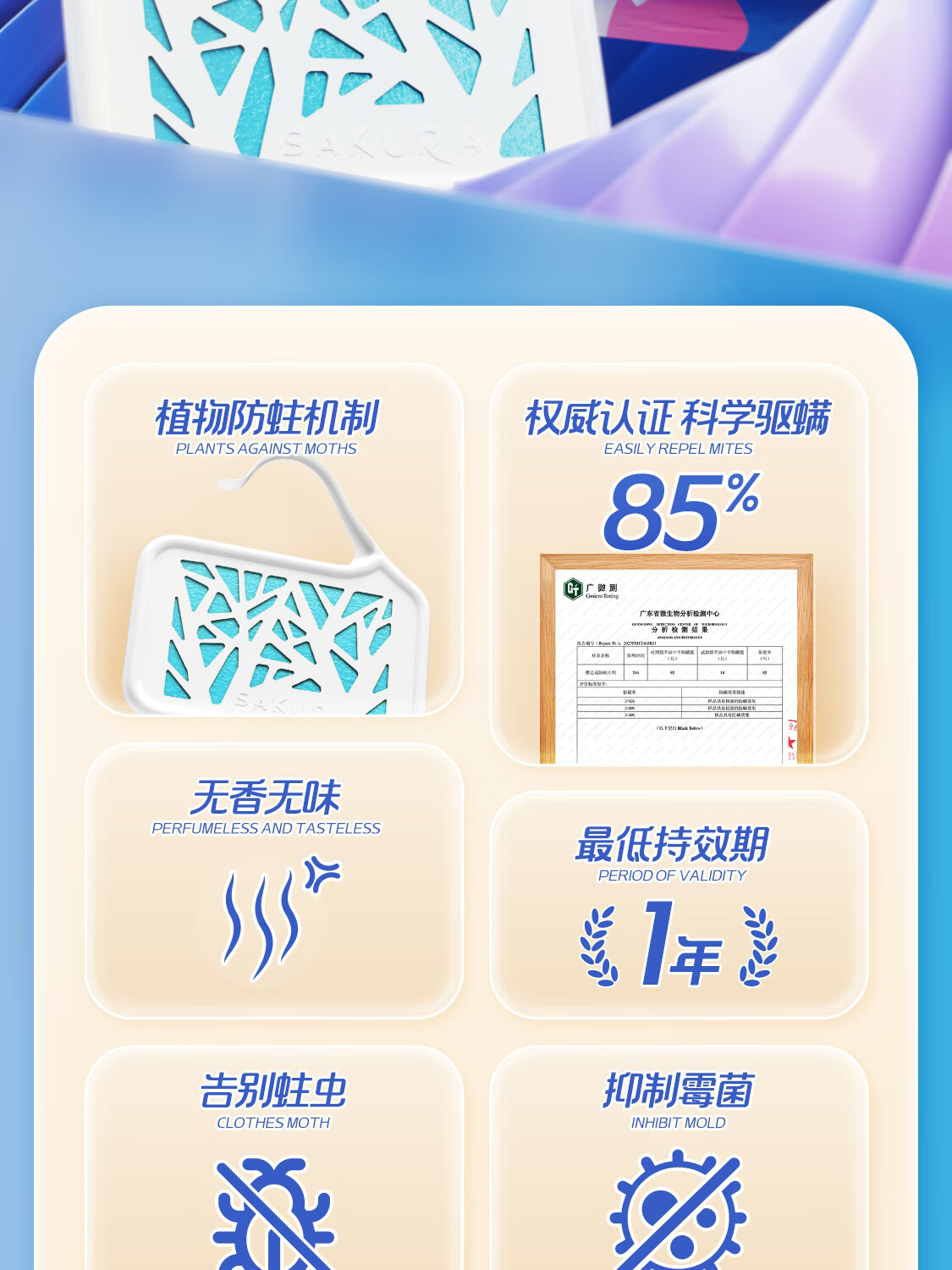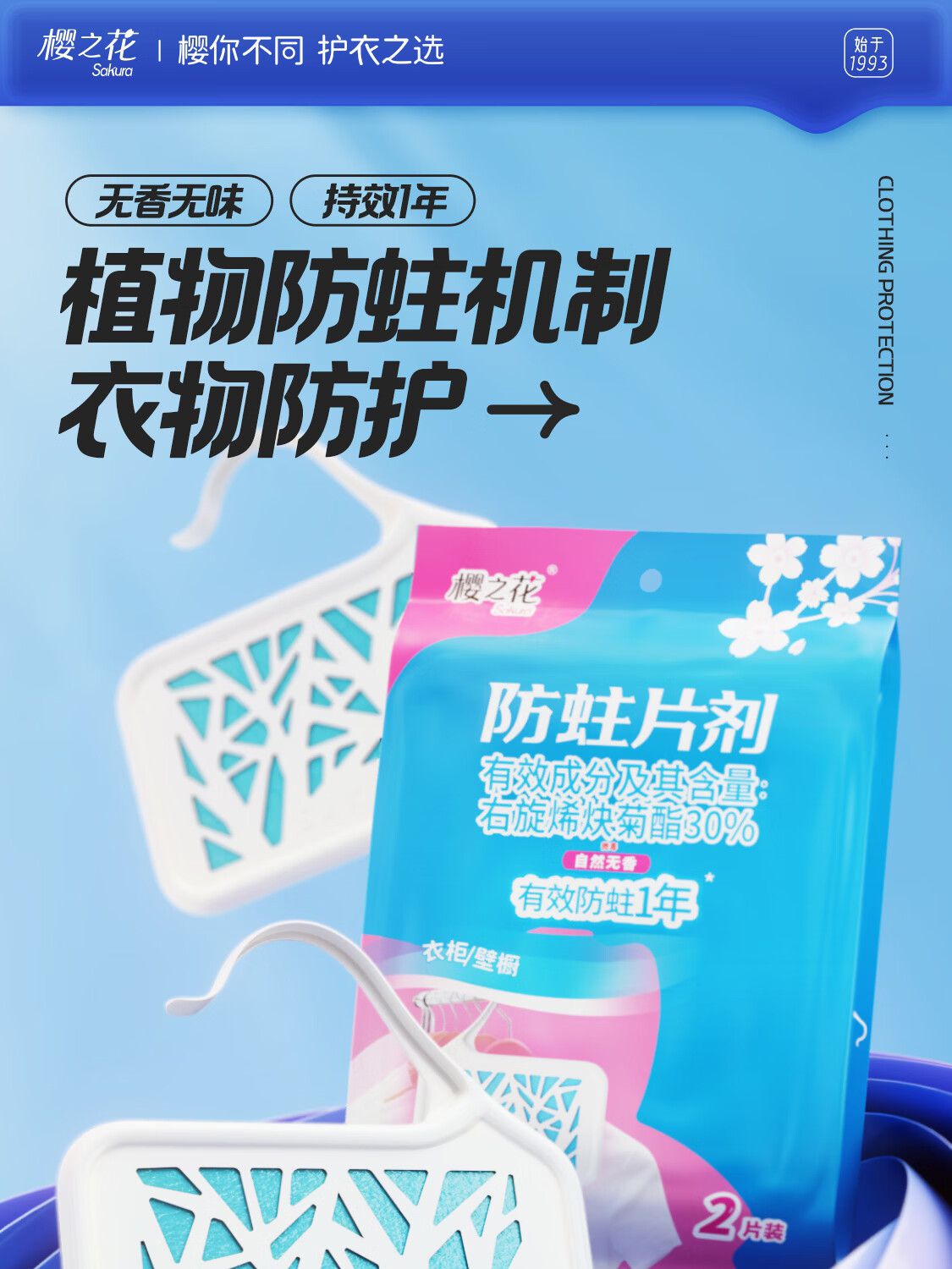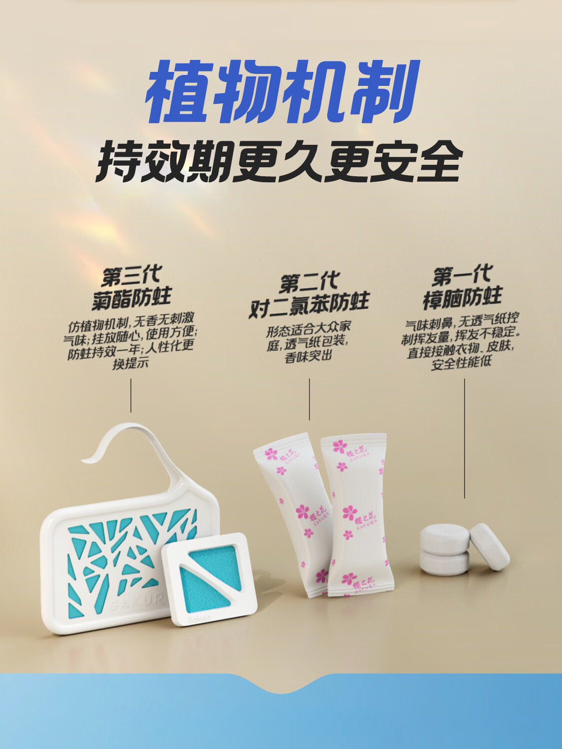 • 樱之花防蛀片剂2片无香菊酯植物防蛀机制代替樟脑丸卫生球羊绒棉驱蛀虫