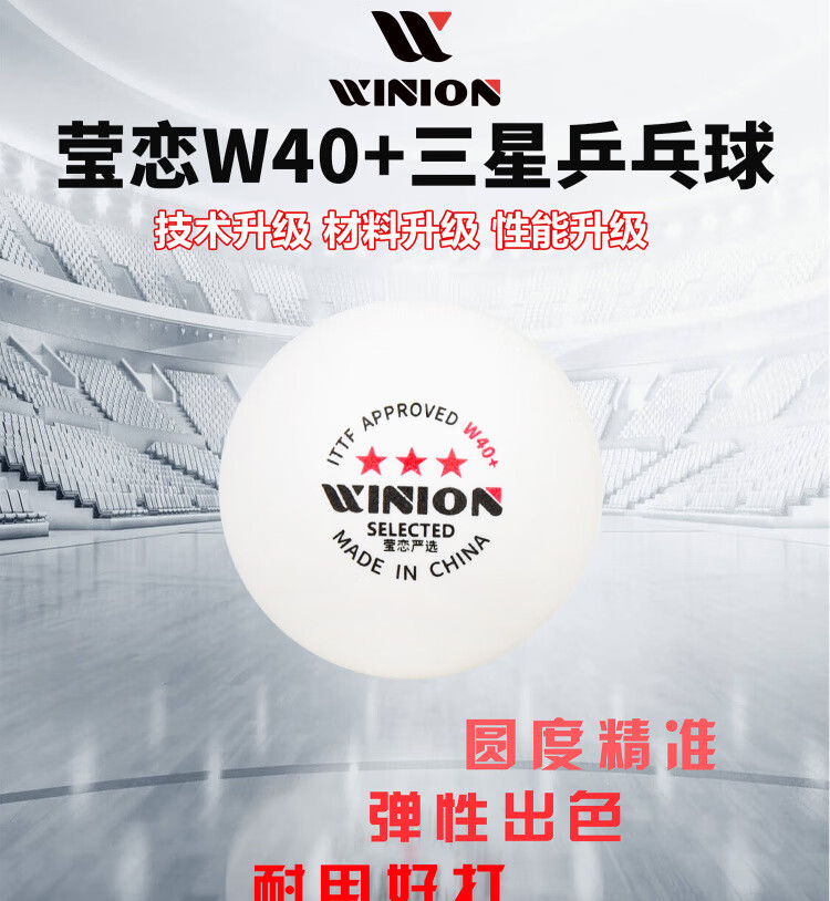 • 莹恋WINION严选乒乓球三星E40+ 新材料3星专业比赛用白色2盒装(20只)